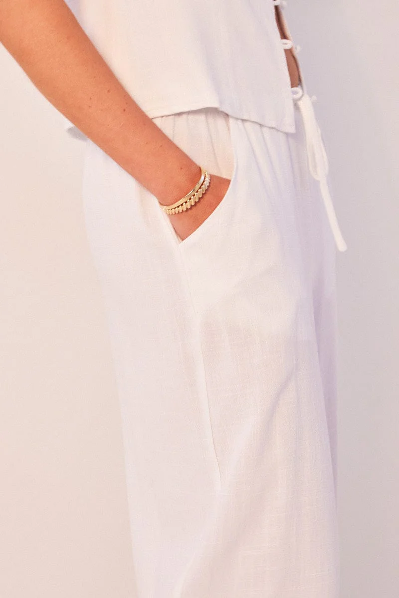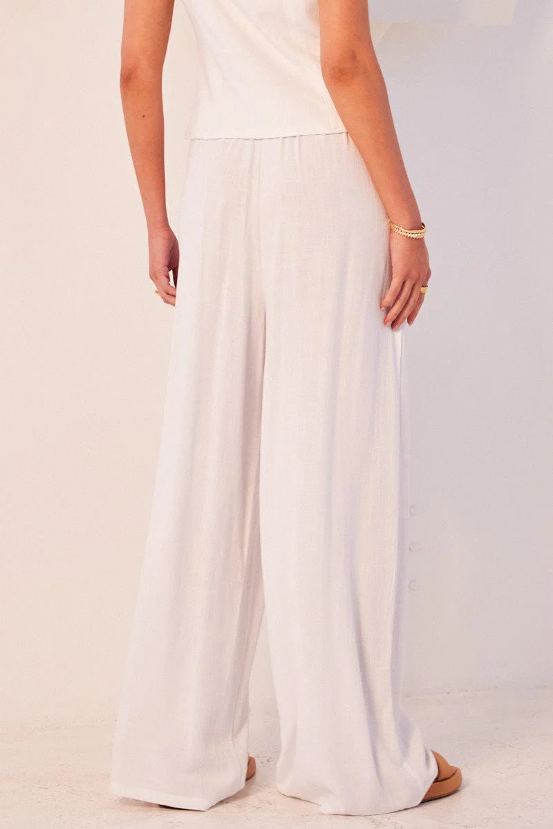 White Wide Leg Pants High Rise