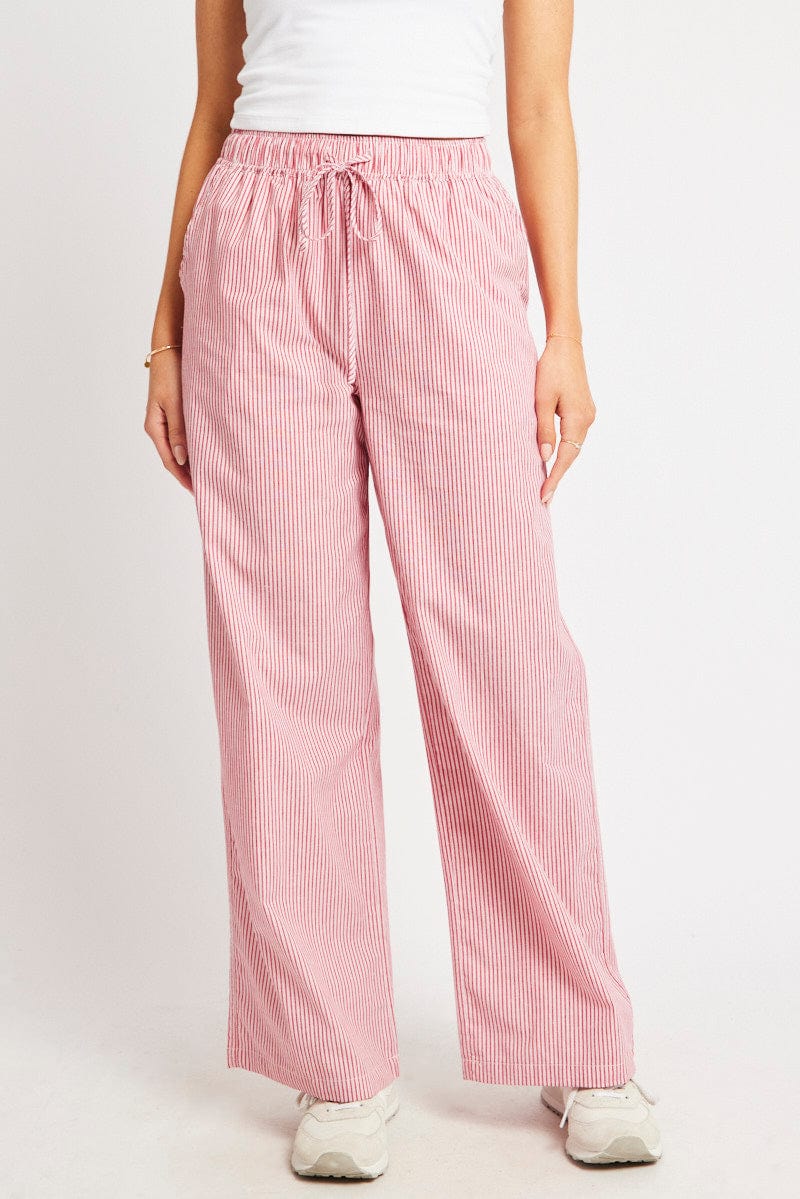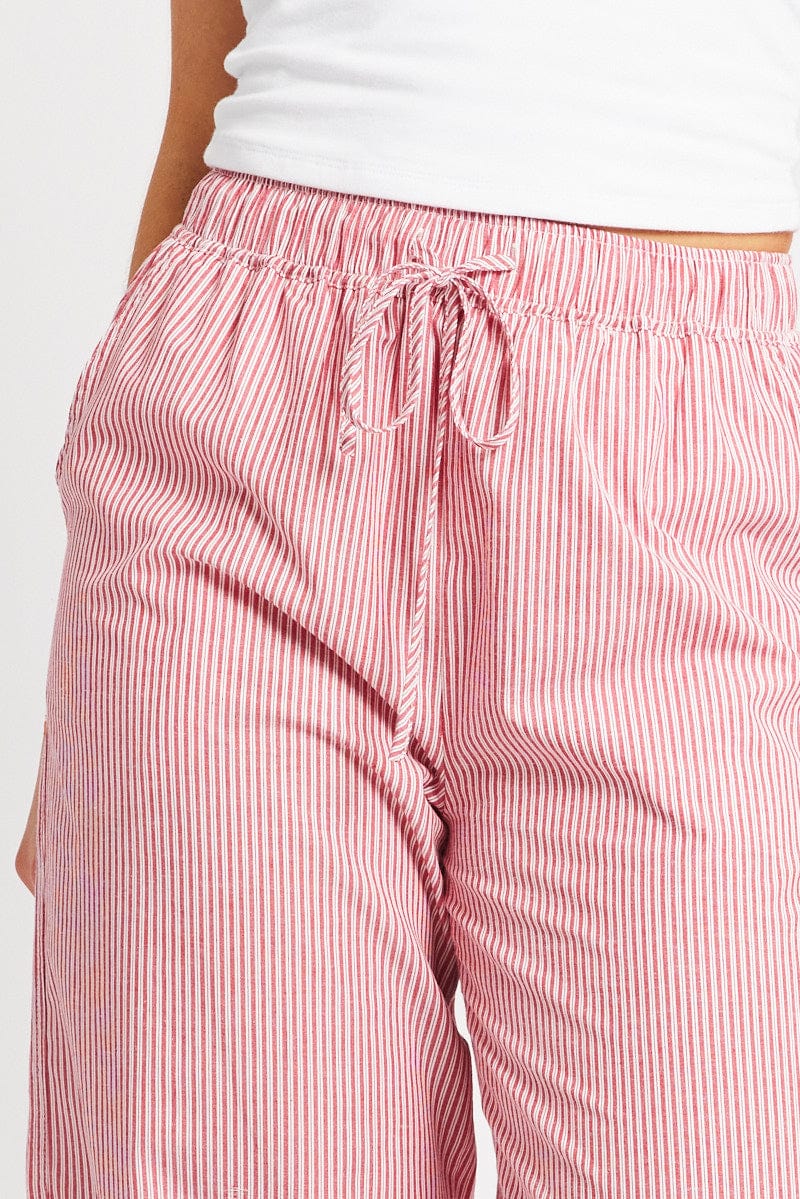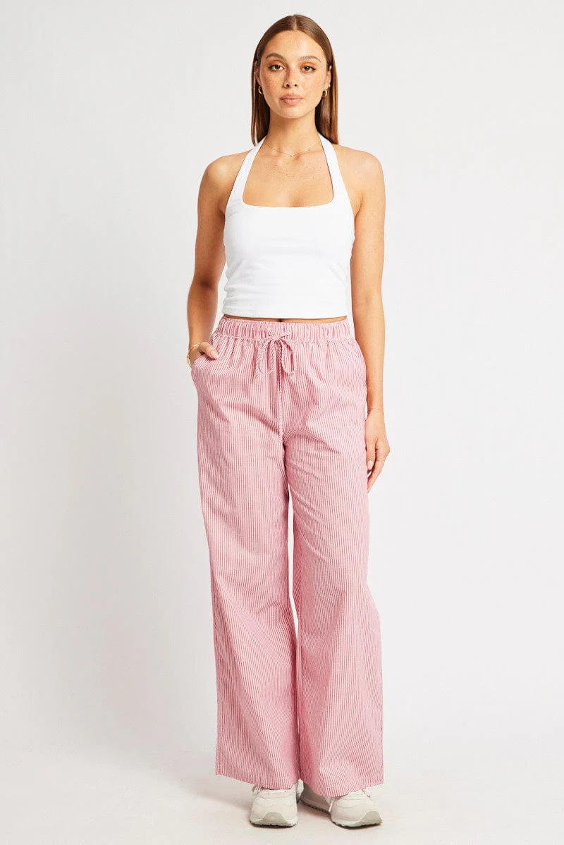 Red Stripe Wide Leg Pants High Rise