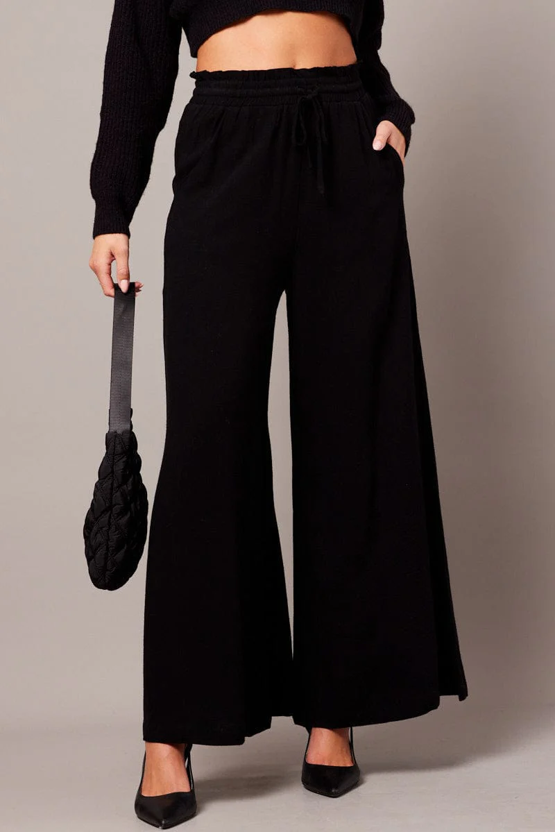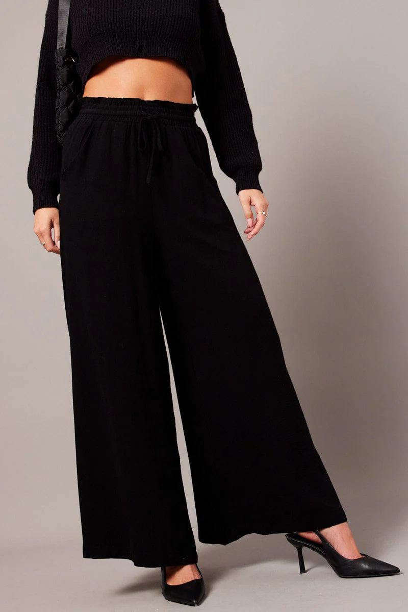 Black Wide Leg Pants High Rise