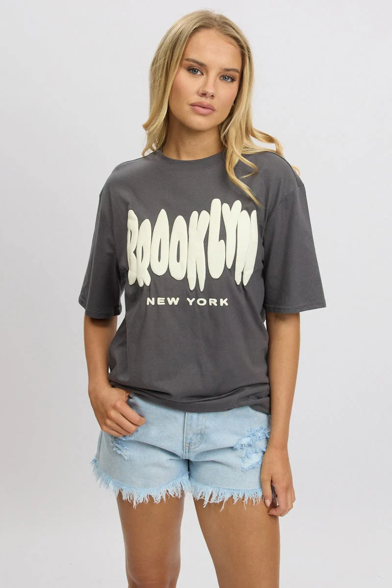 Grey Graphic Tee Short Sleeve