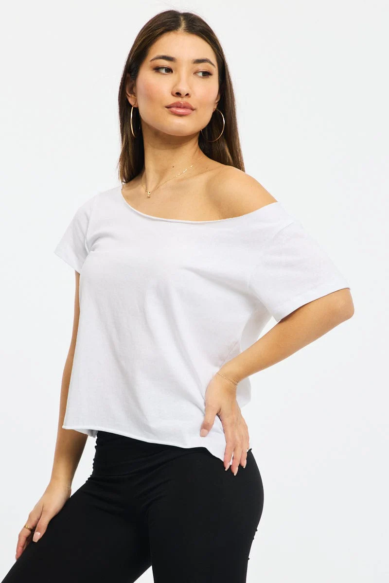 White Off Shoulder Tee Short Sleeve