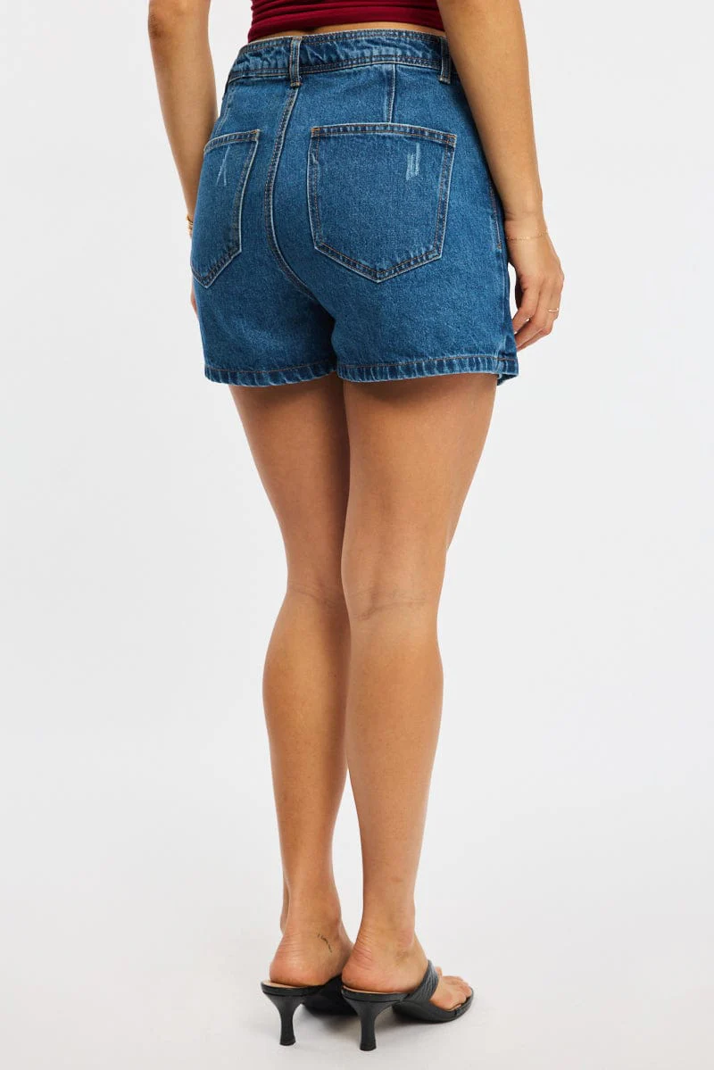 Denim Skinny Shorts Mid Rise