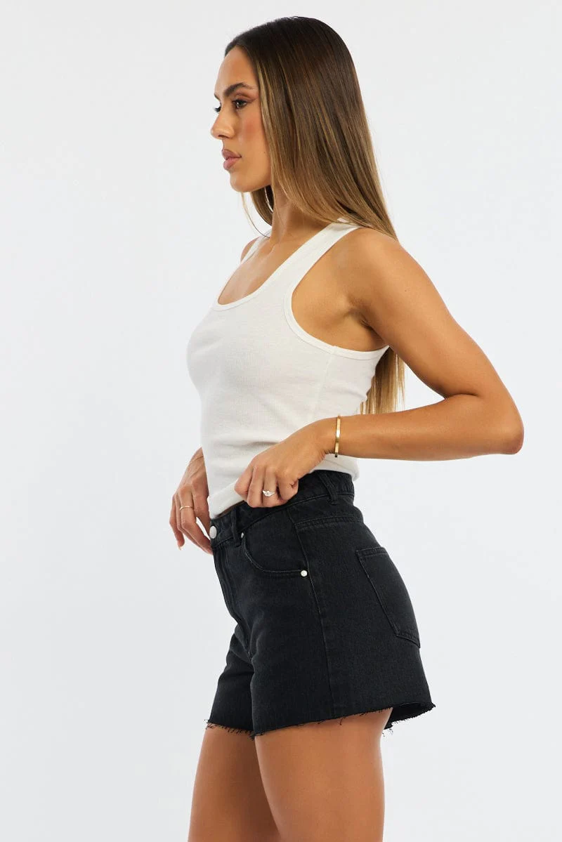 Black Relaxed Shorts High Rise