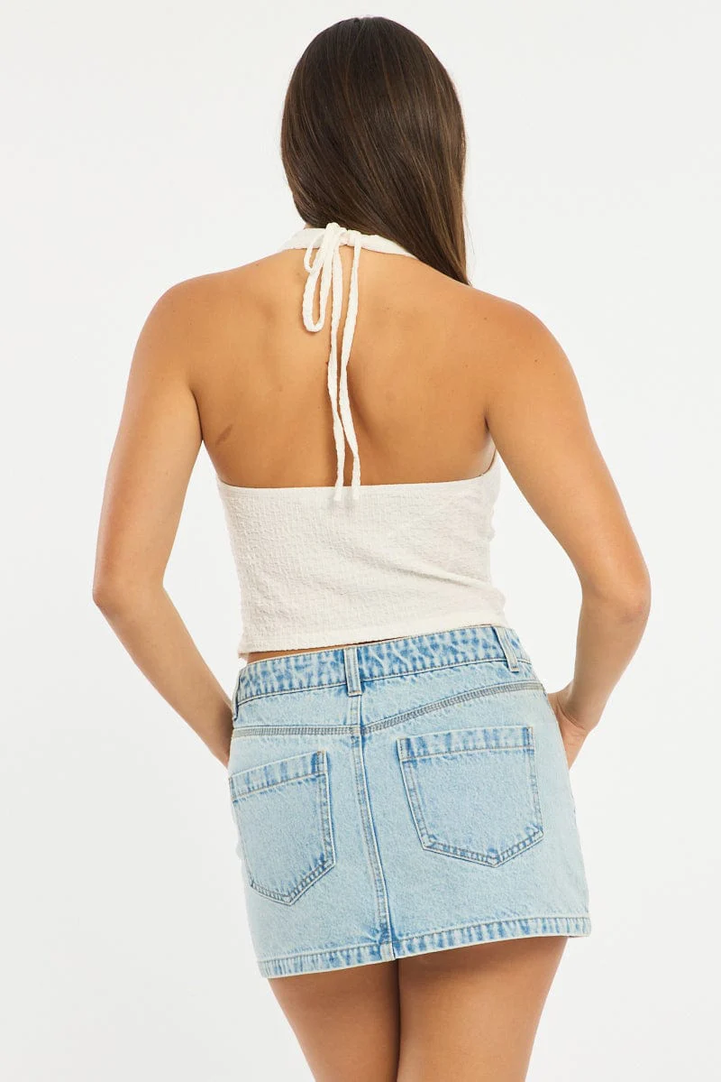 Denim Mini Skirt Mid Rise Regular Fit