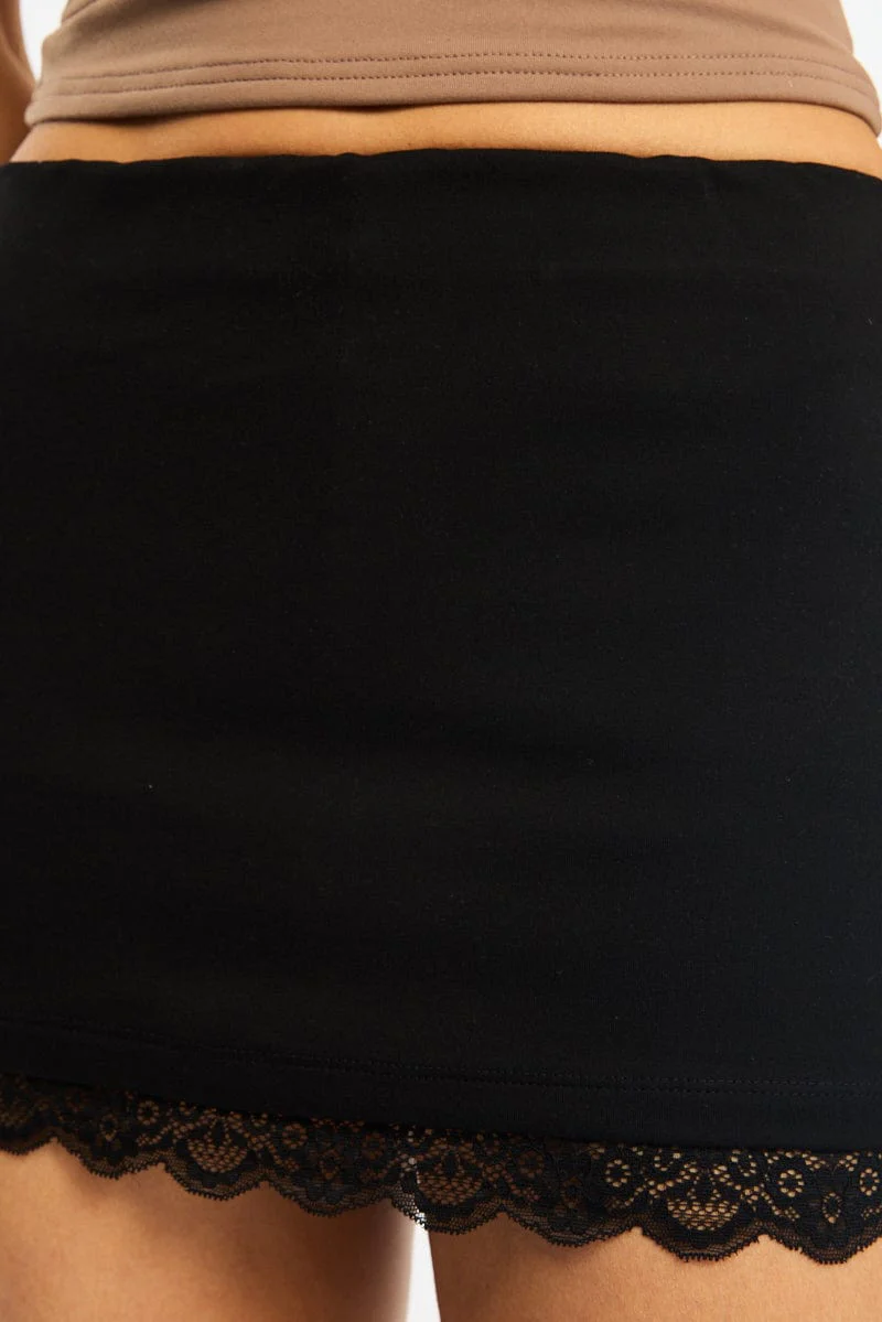 Black Mini Skort Skirt High Waisted Lace Hem Ponte