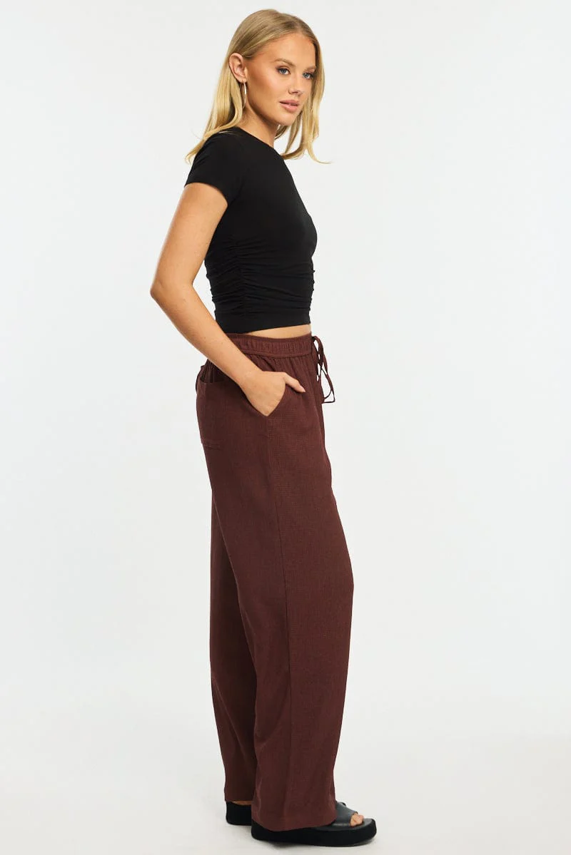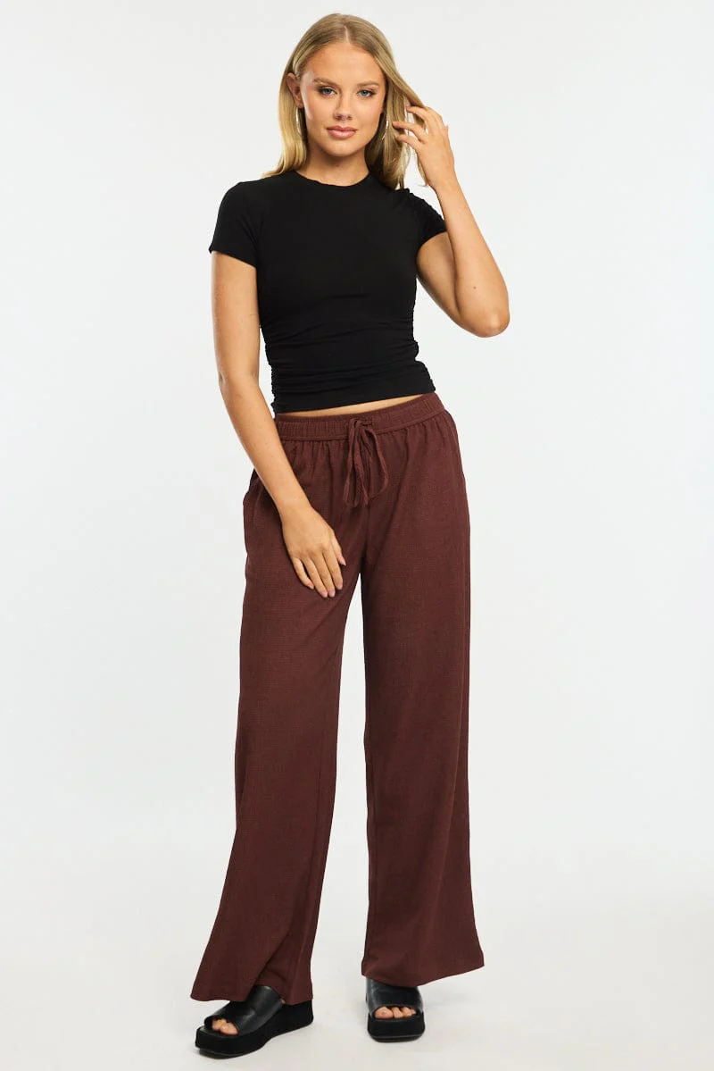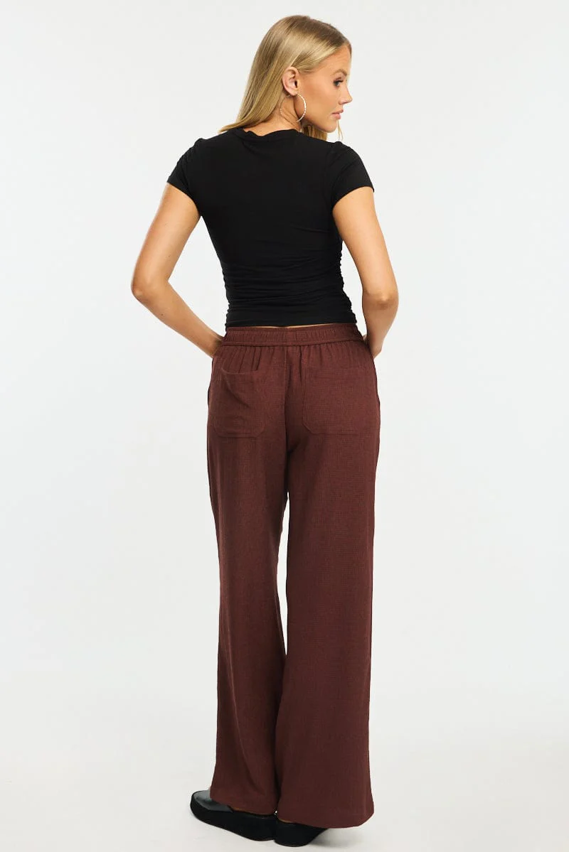 Brown Wide Leg Pants Elasticated Waist