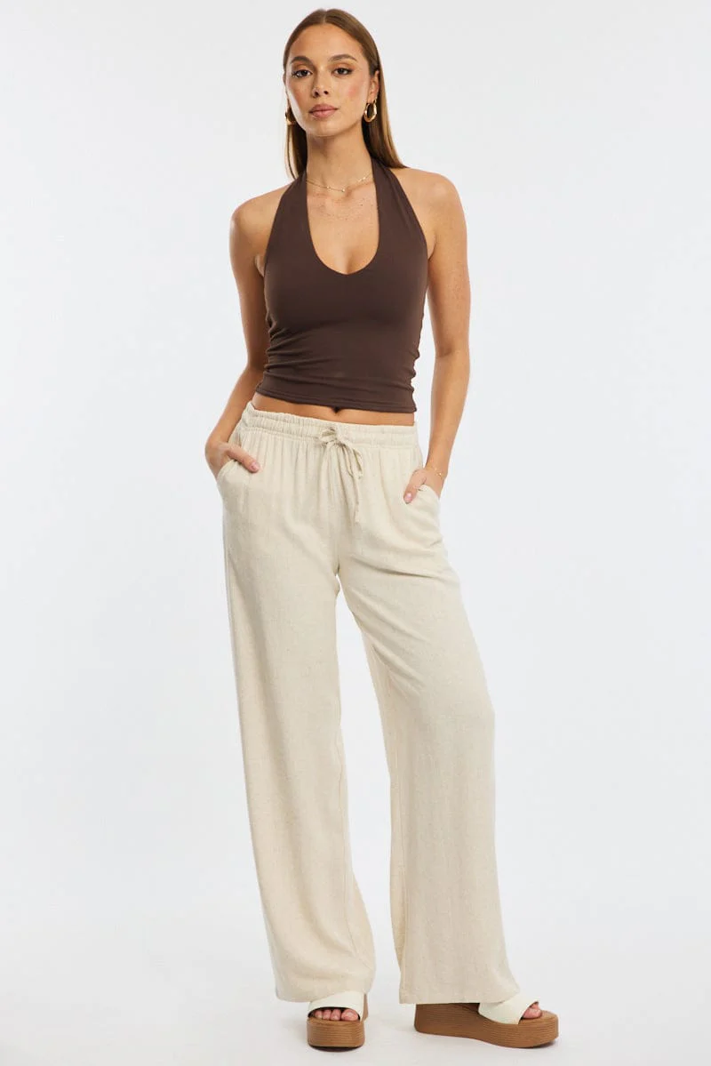 Beige Wide Leg Pants