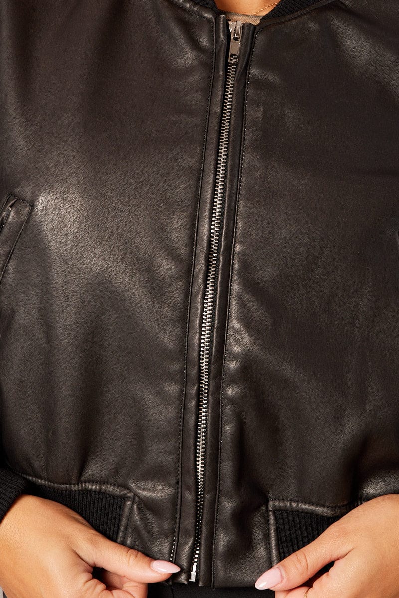 Black Bomber Jacket Crop Faux Leather