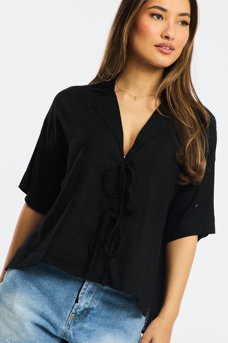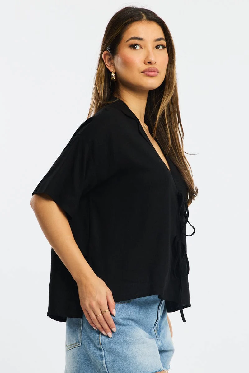 Black Tie Up Top Short Sleeve