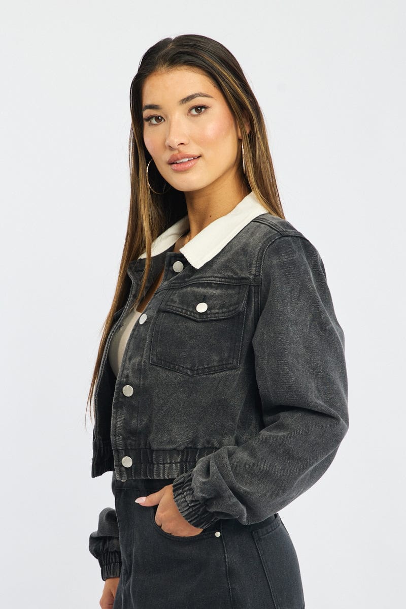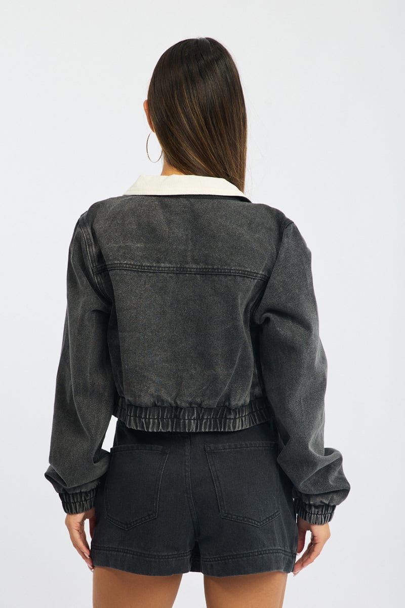 Black Crop Jacket With Contrast Collar