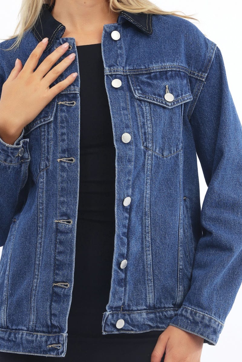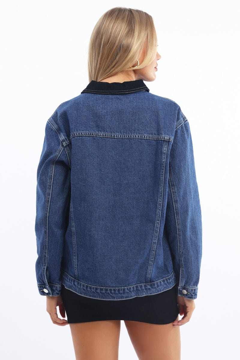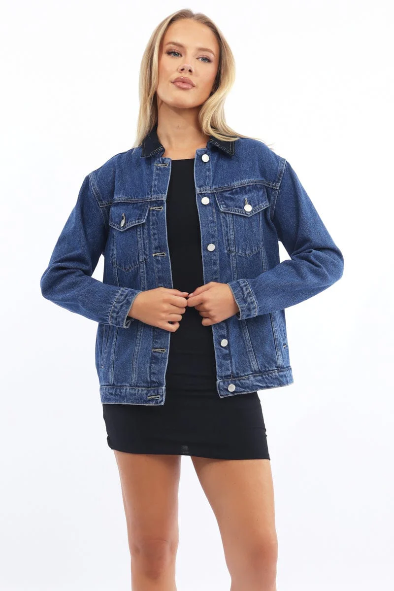 Denim Oversized Jacket Contrast Collar