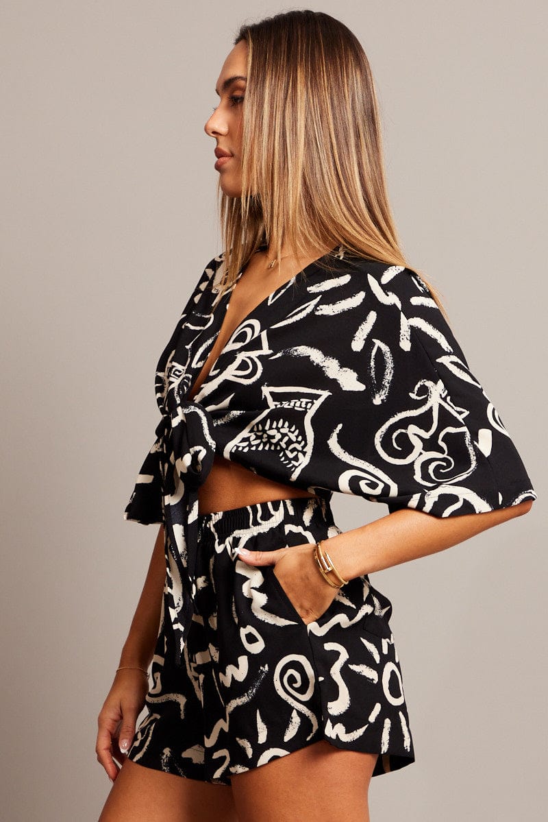 Black Abstract Tie Up Bolero Short Sleeve