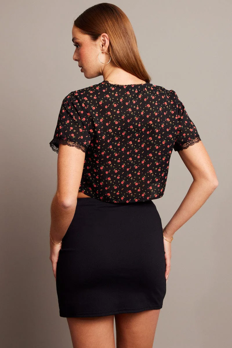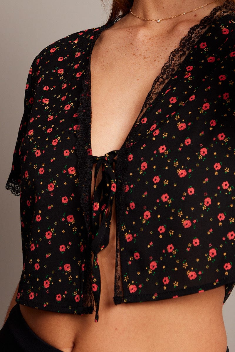 Black Ditsy Tie Cardigan Short Sleeve