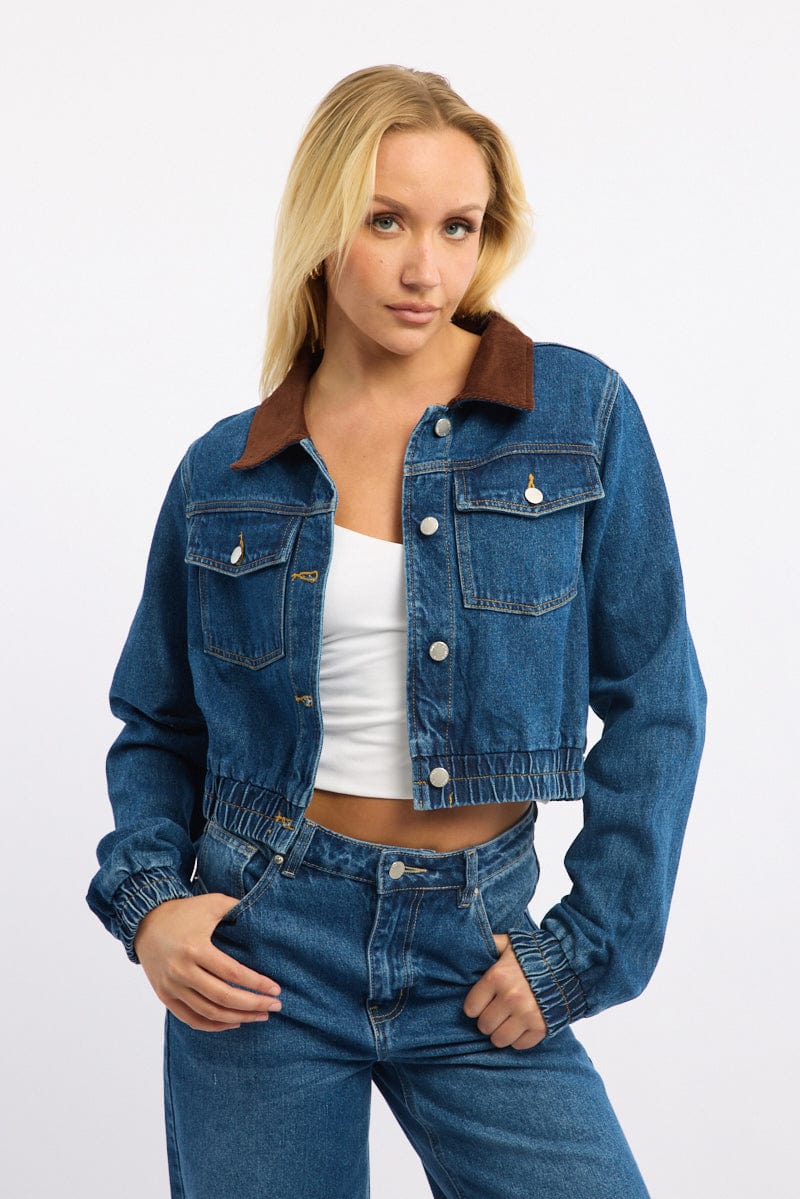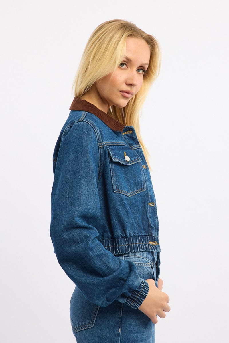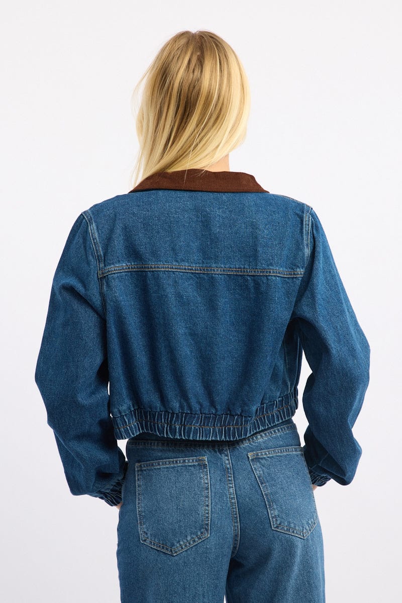 Denim Crop Jacket With Contrast Collar