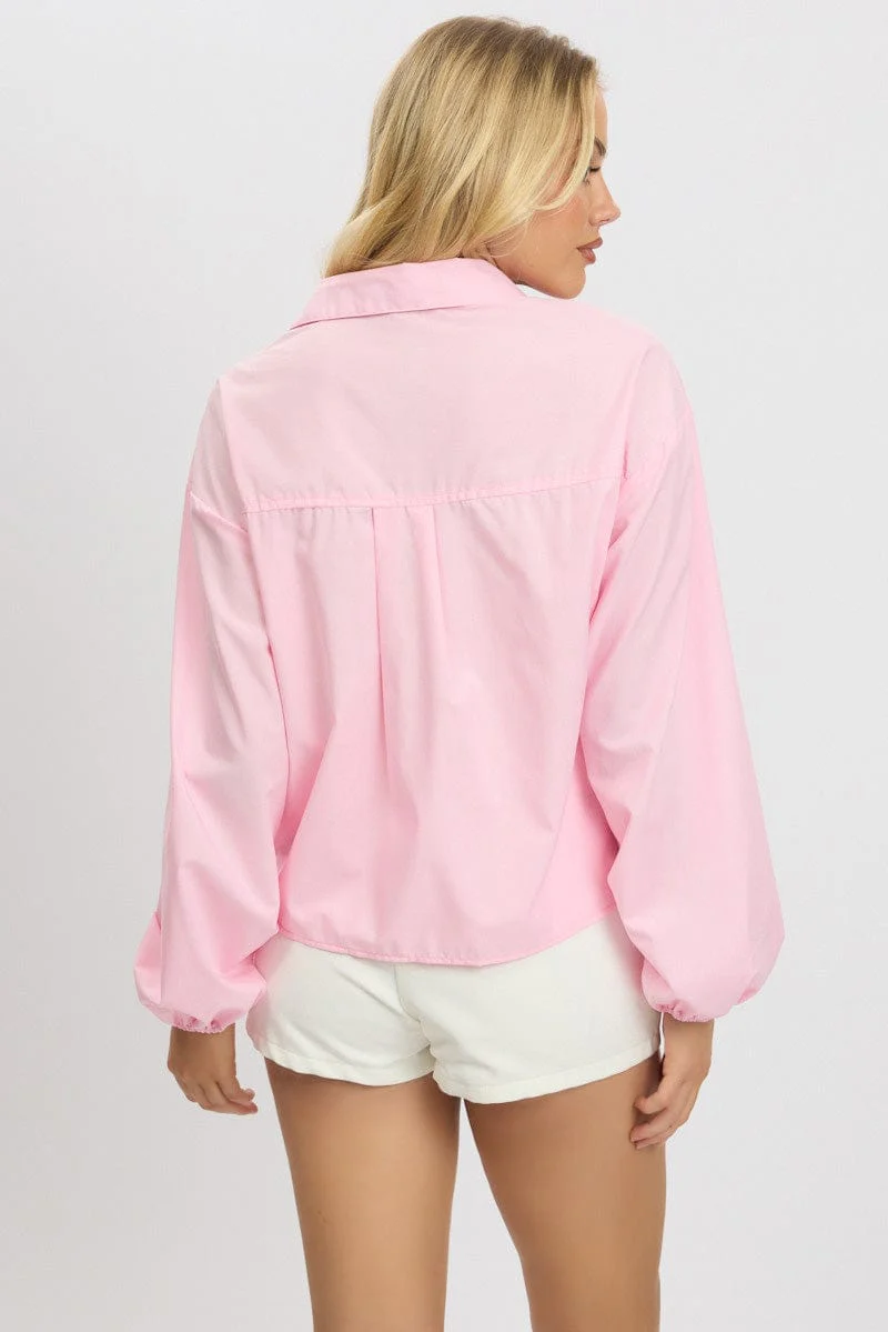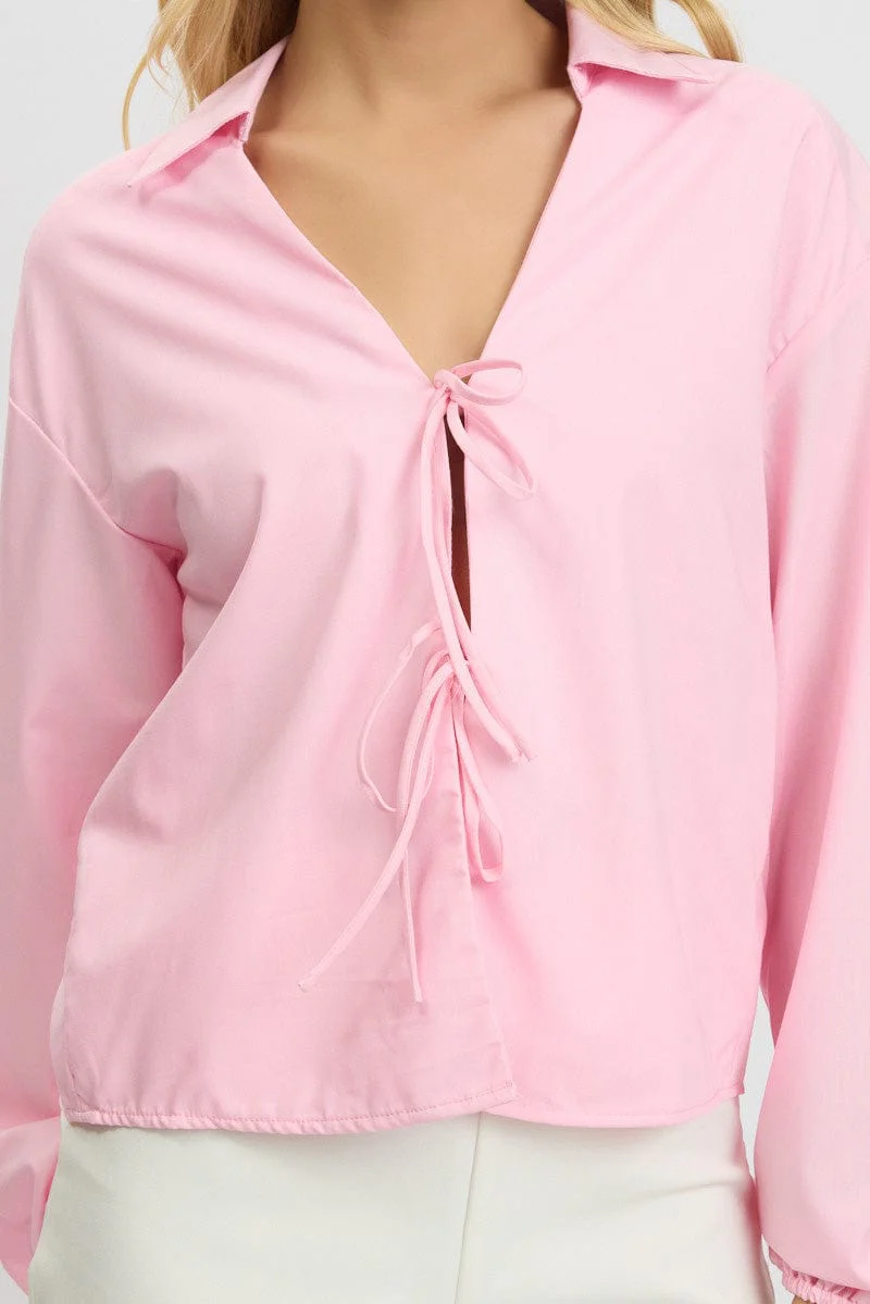 Pink Tie Up Front Top Long Sleeve