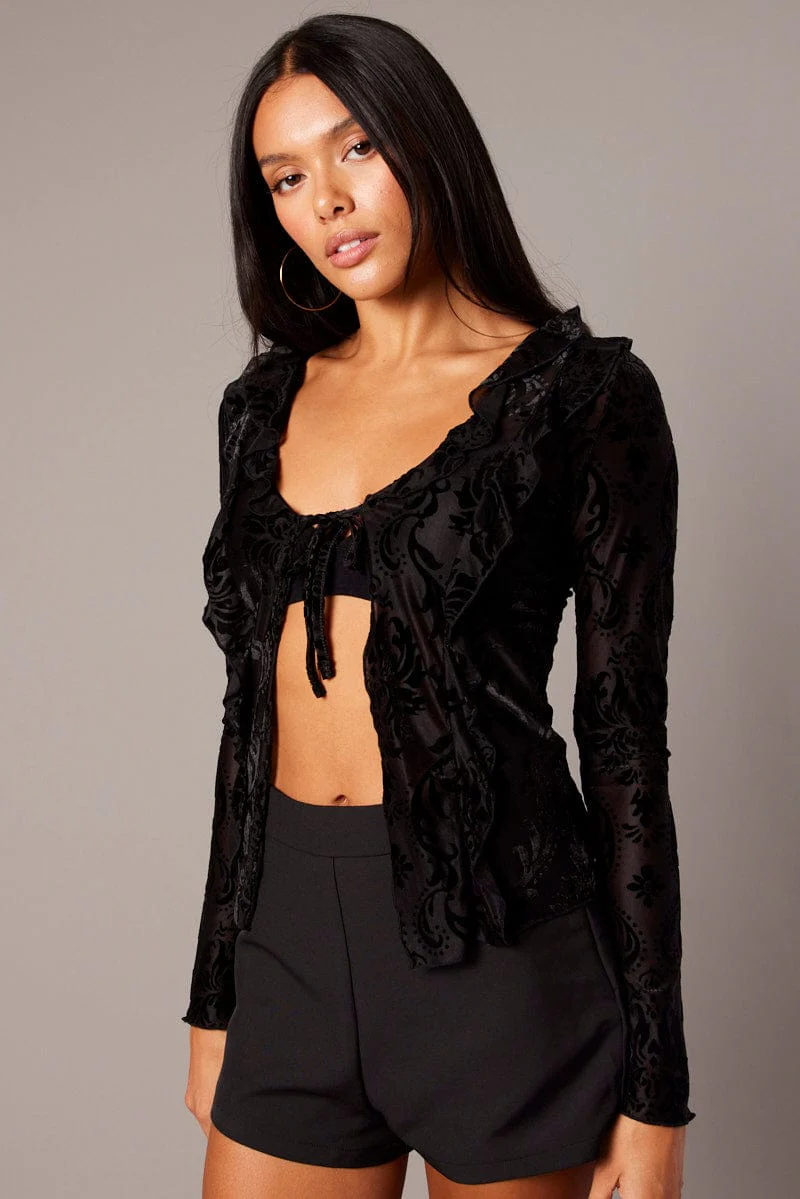 Black Ruffle Cardigan Long Sleeve