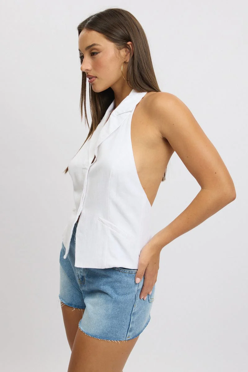 White Vest Top V Neck Halter Neck Open Back