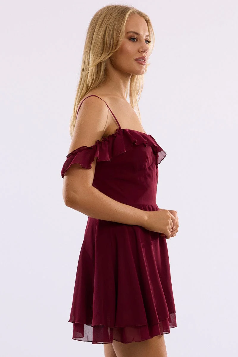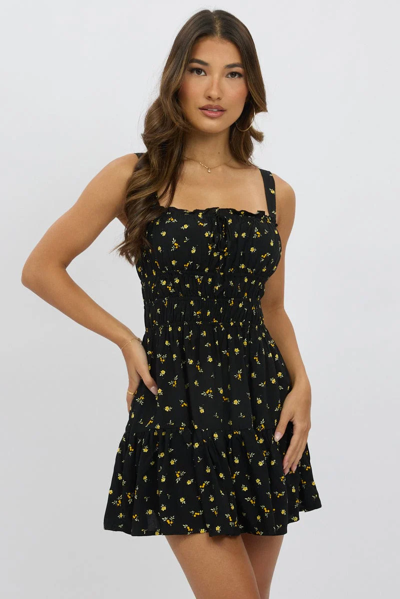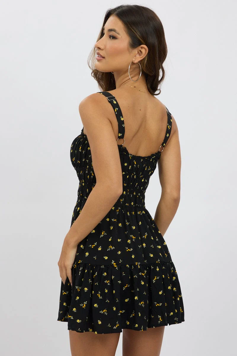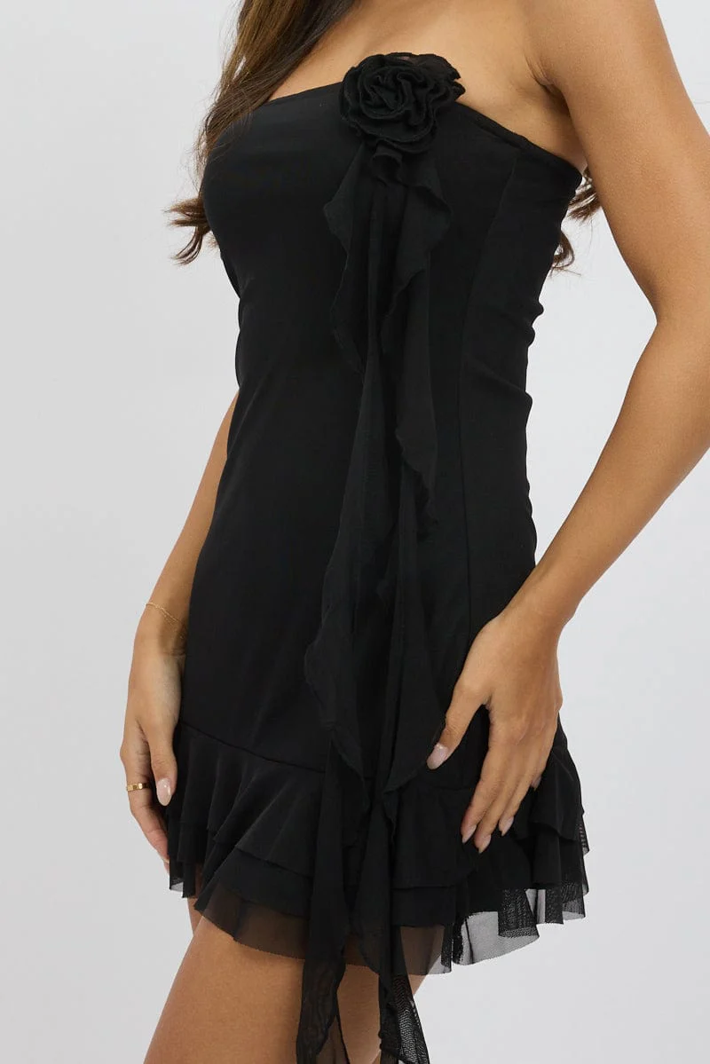 Yellow Strapless Dress Mini Frill Hem Mesh