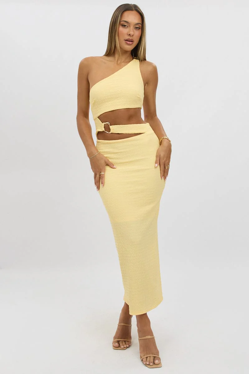 Yellow Bodycon Dress One Shoulder Textured