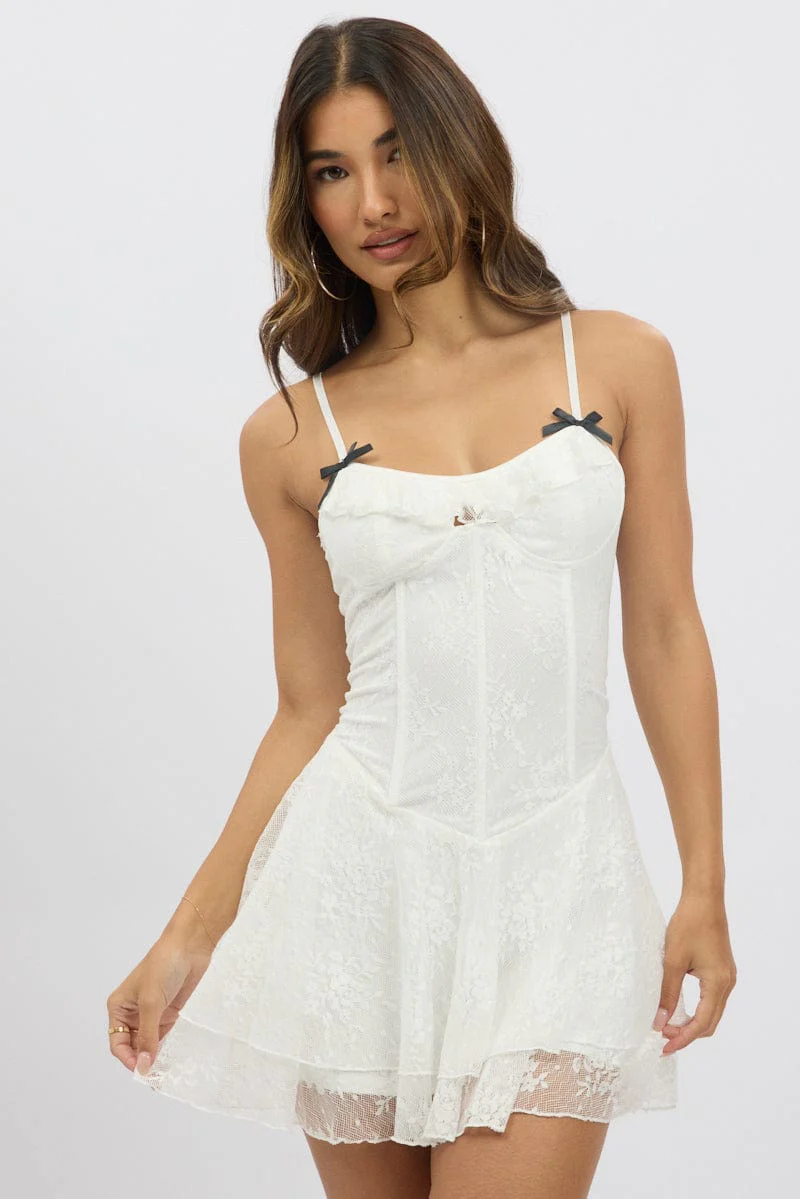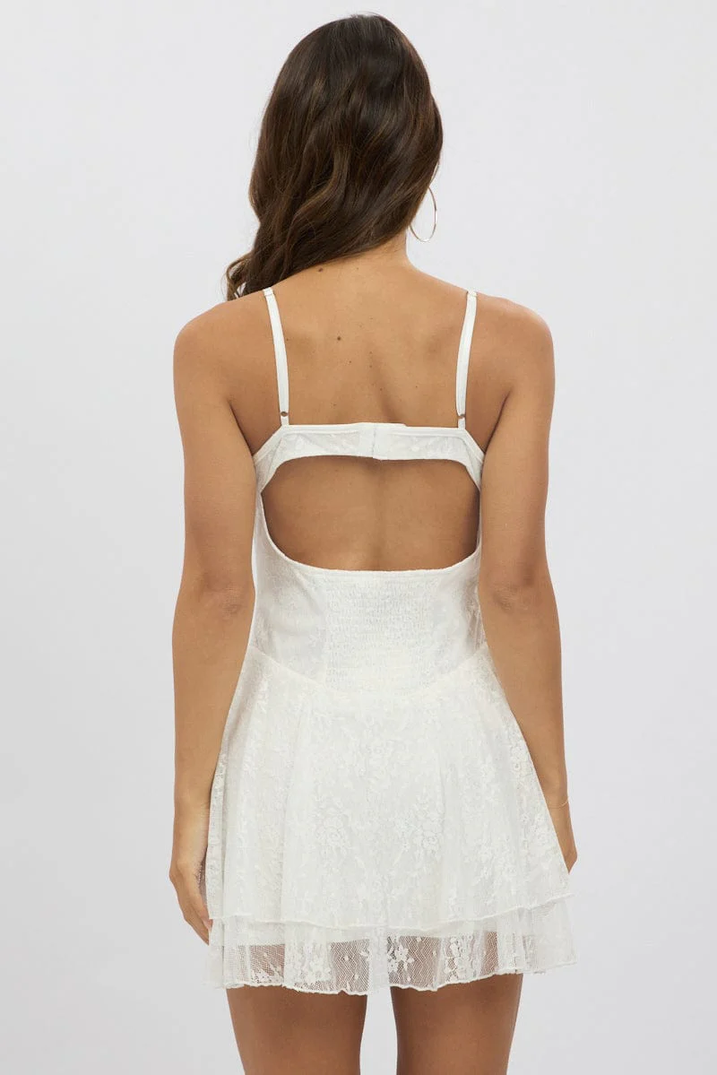 White Fit And Flare Dress Strappy Lace