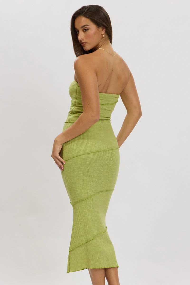 Green Bodycon Dress Midi Strapless