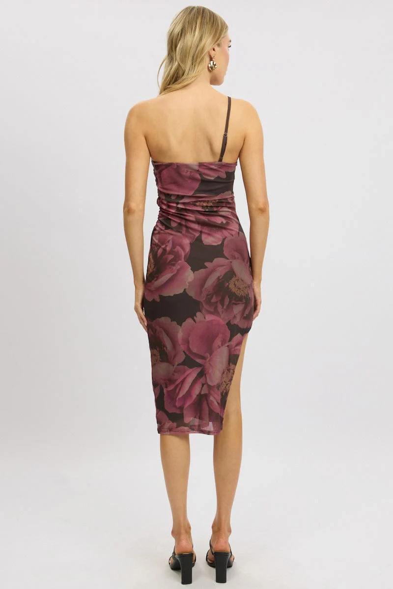 Pink Floral Bodycon Dress One Shoulder