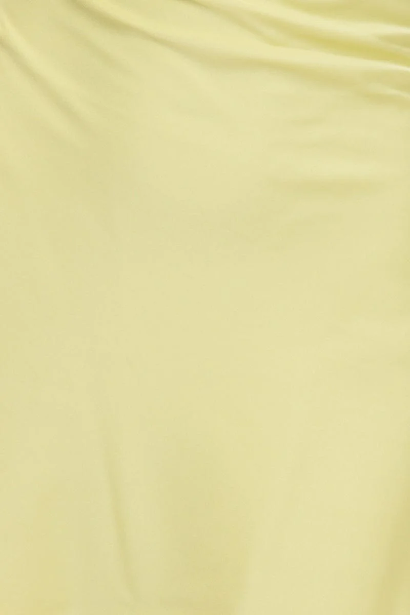Yellow Mini Dress Cowl Neck Backless Satin