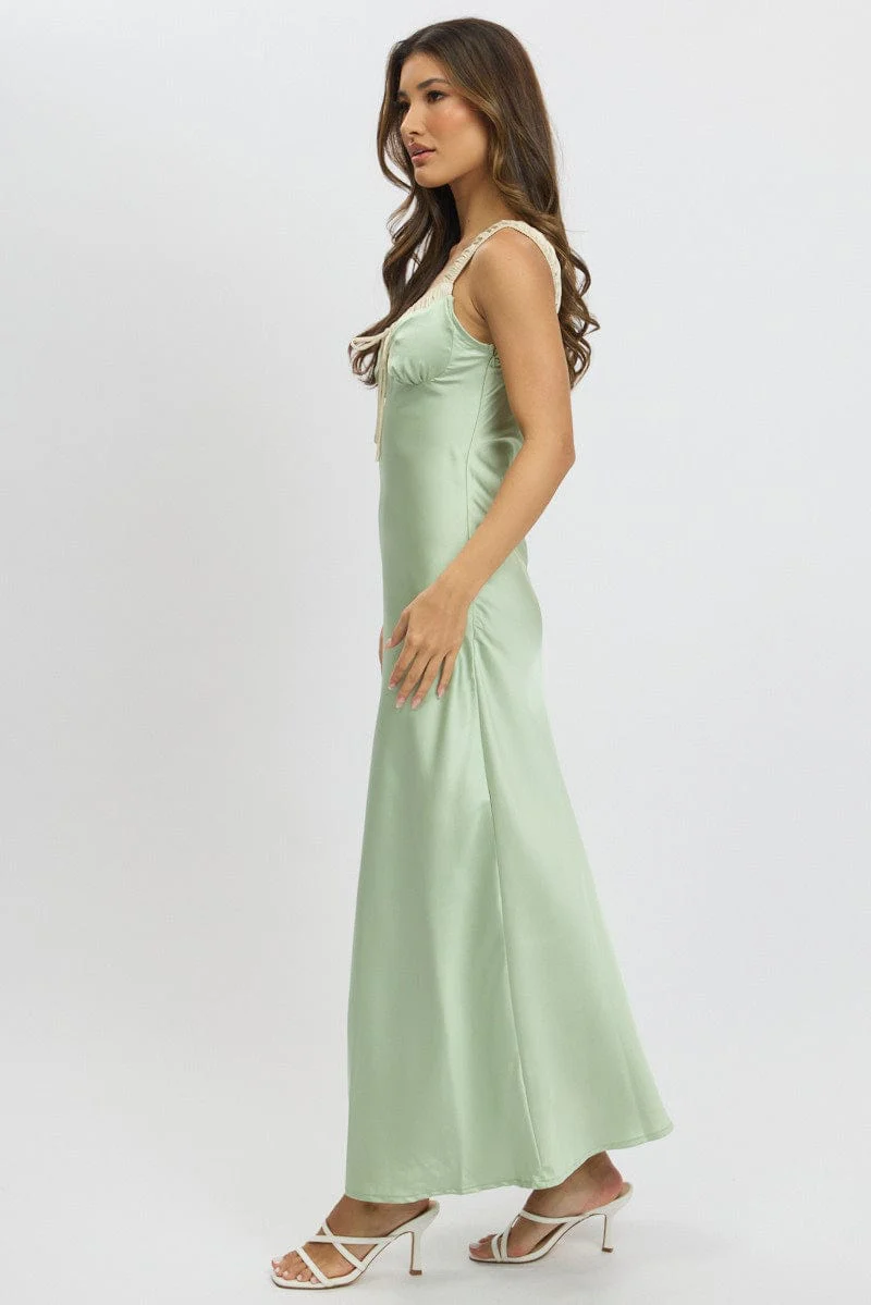 Green Midi Dress Elasticated Shoulder Strap Satin