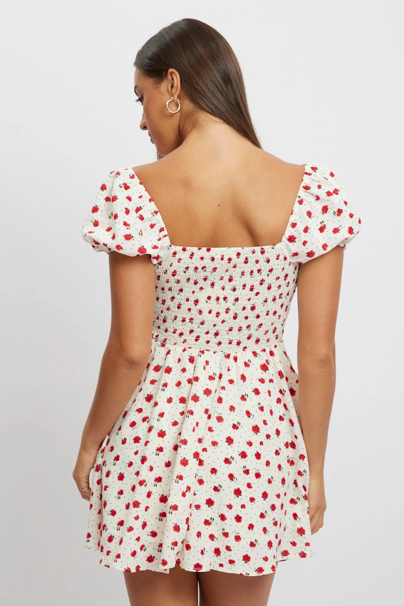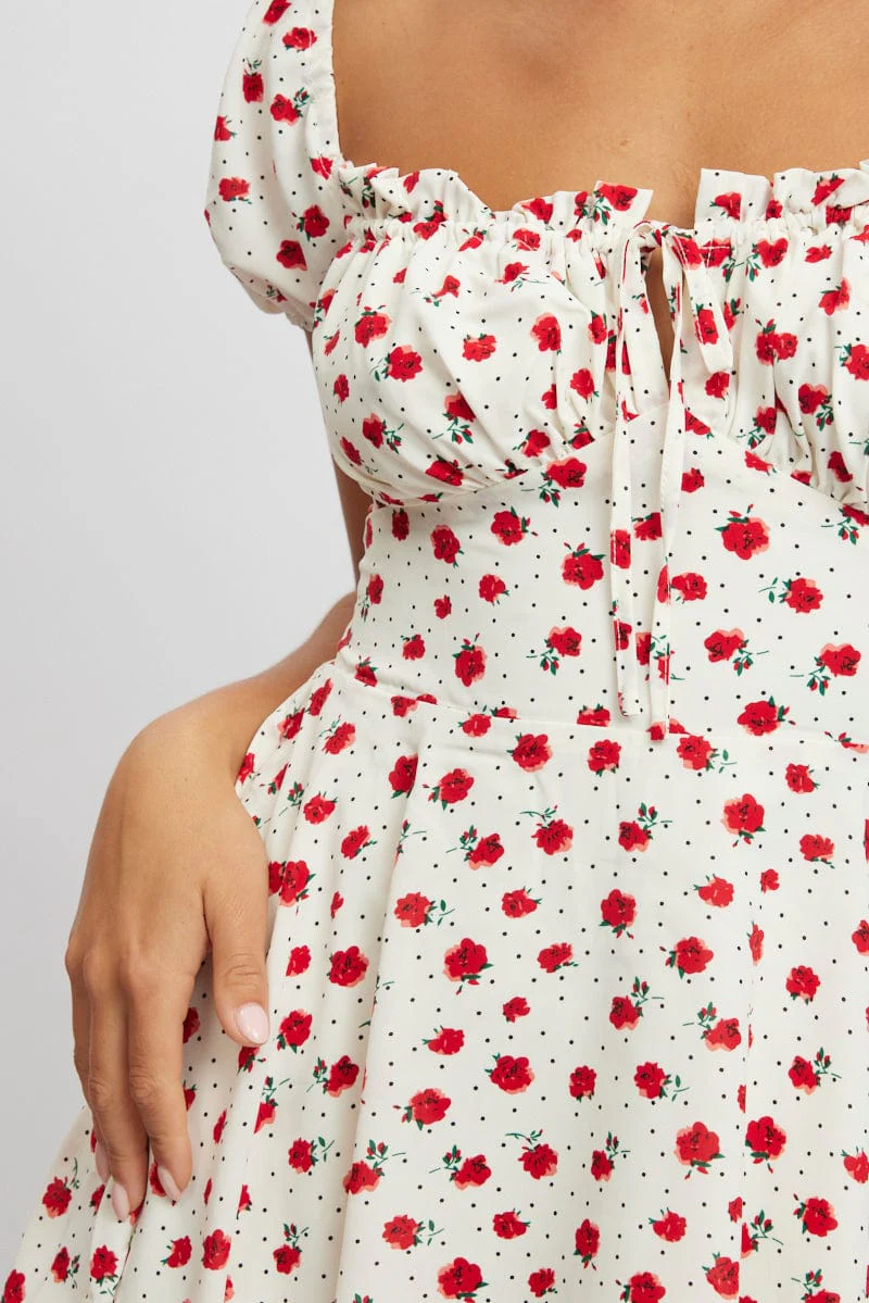 Red Ditsy Fit And Flare Dress Mini