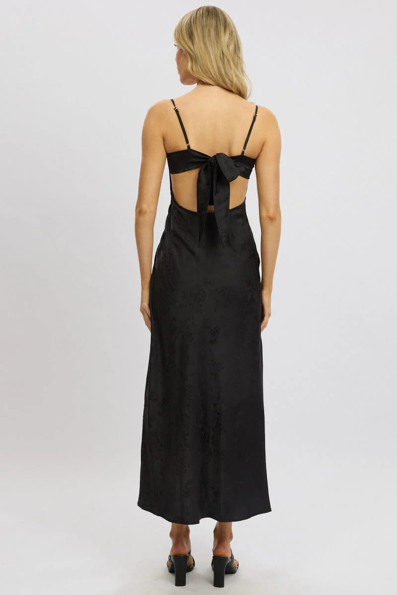 Black Maxi Dress Back Tie Satin