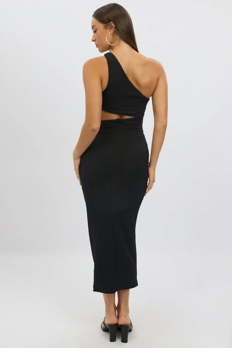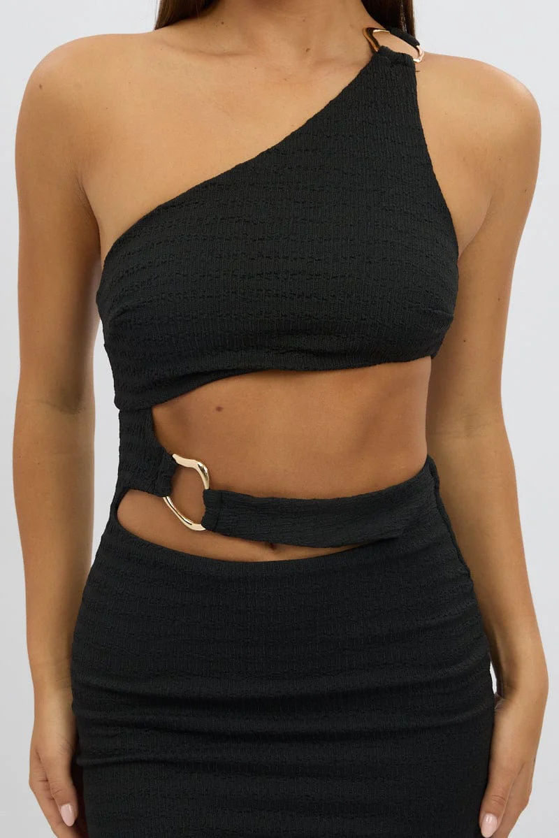 Black Bodycon Dress One Shoulder Textured