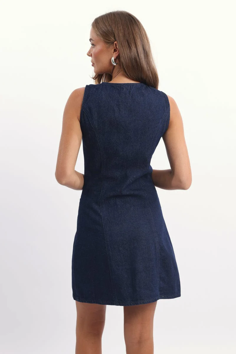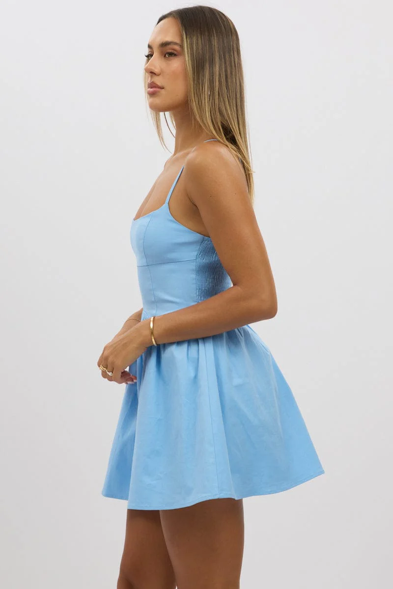 Blue Fit And Flare Dress Mini