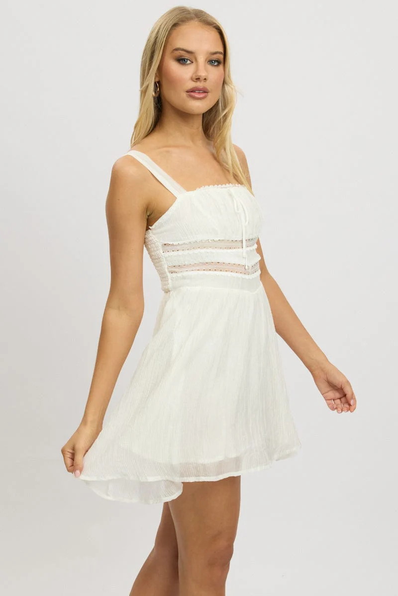 White Fit And Flare Dress Mini