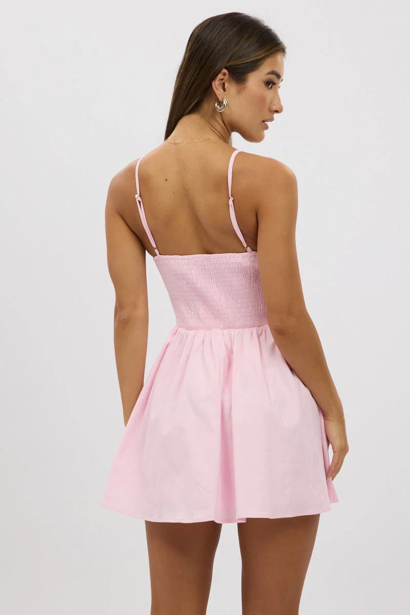 Pink Fit And Flare Dress Mini