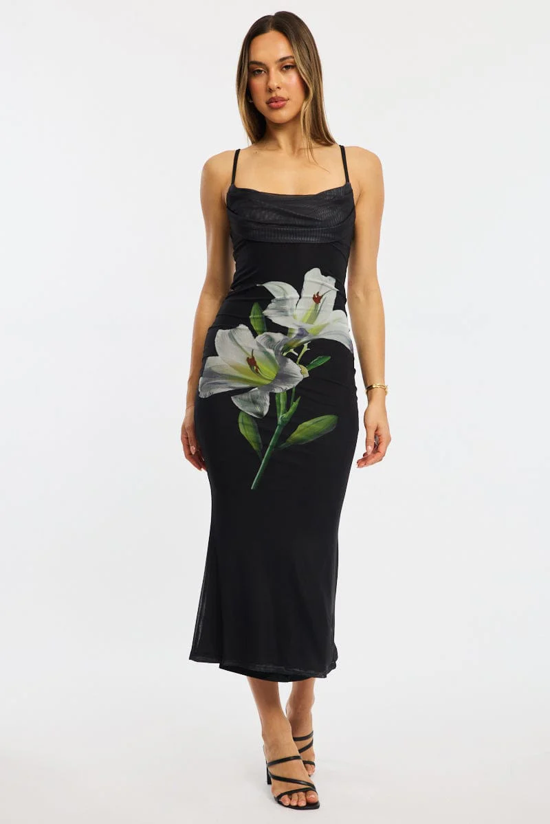 Black Floral Bodycon Dress Maxi