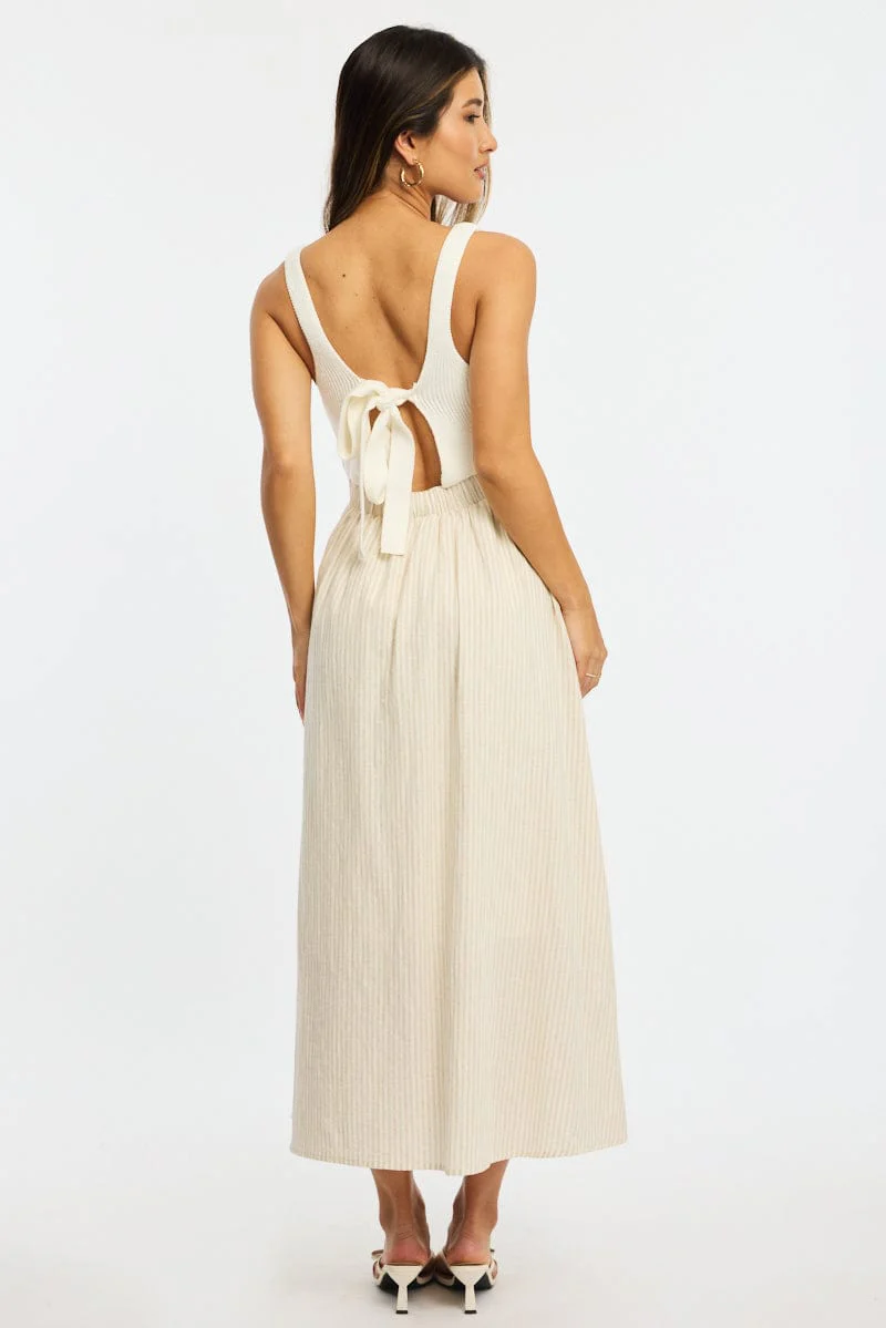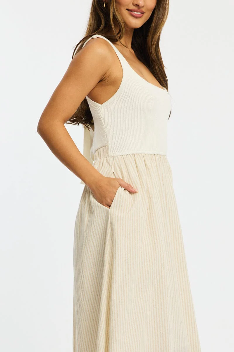Beige Stripe Knit Dress Maxi