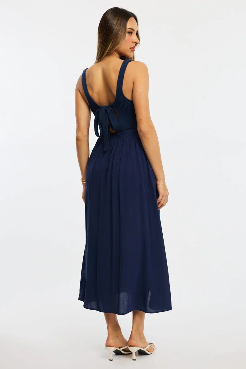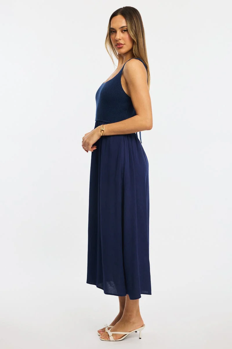 Blue Stripe Knit Dress Maxi