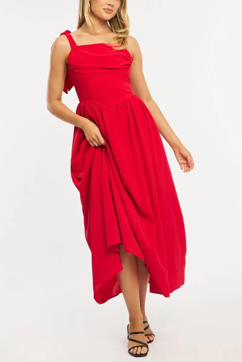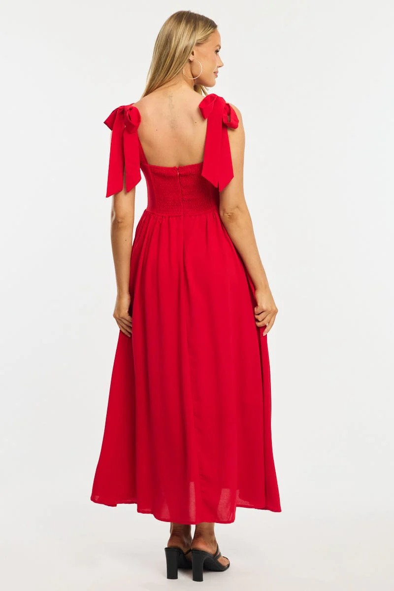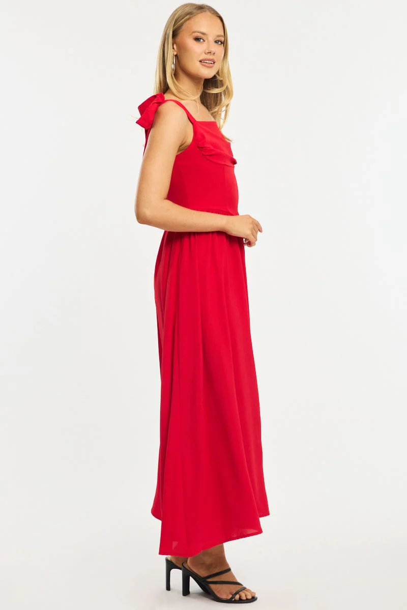 Red Maxi Dress Tie Shoulder
