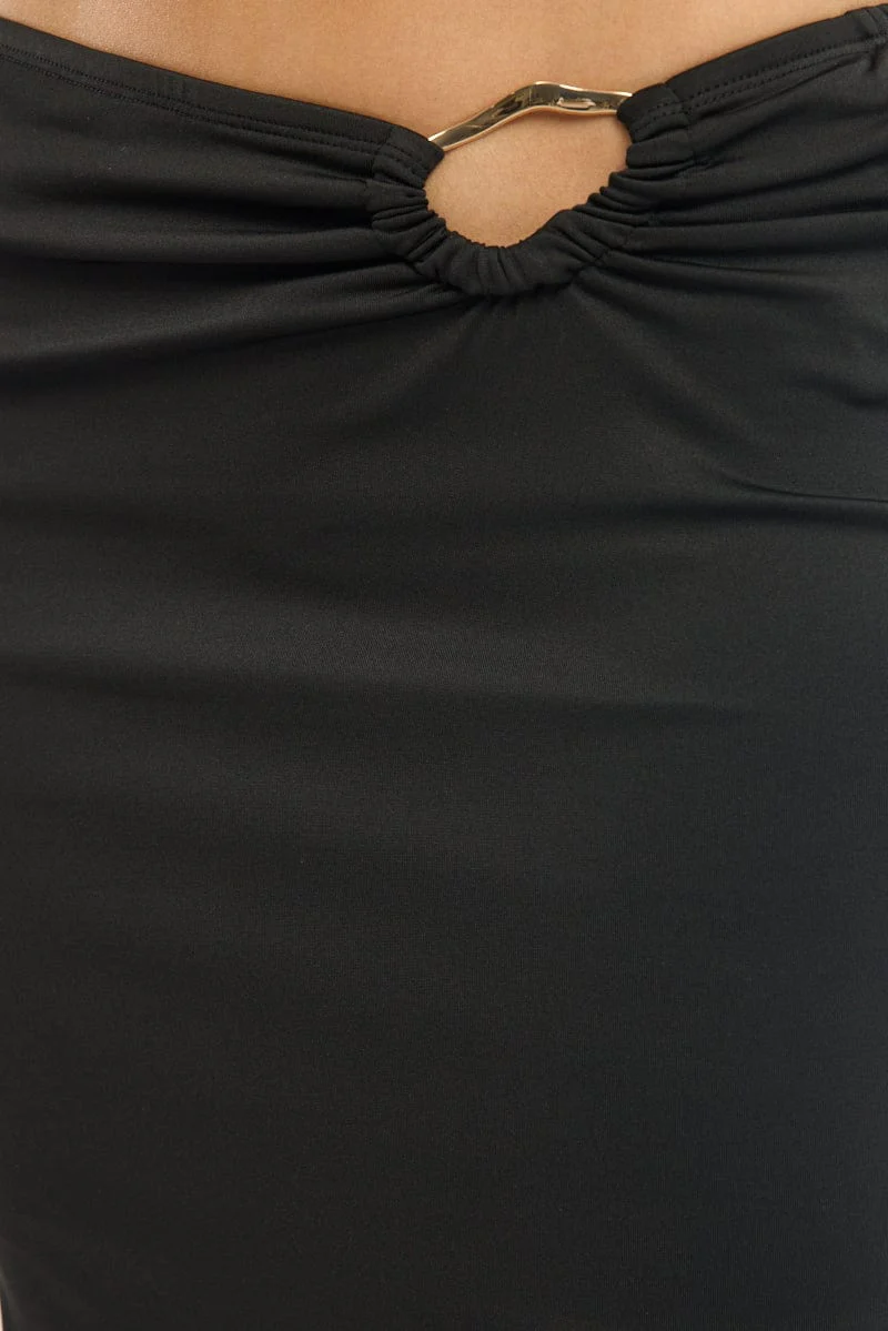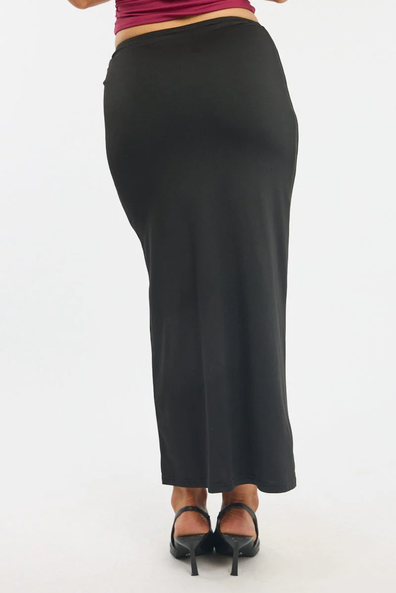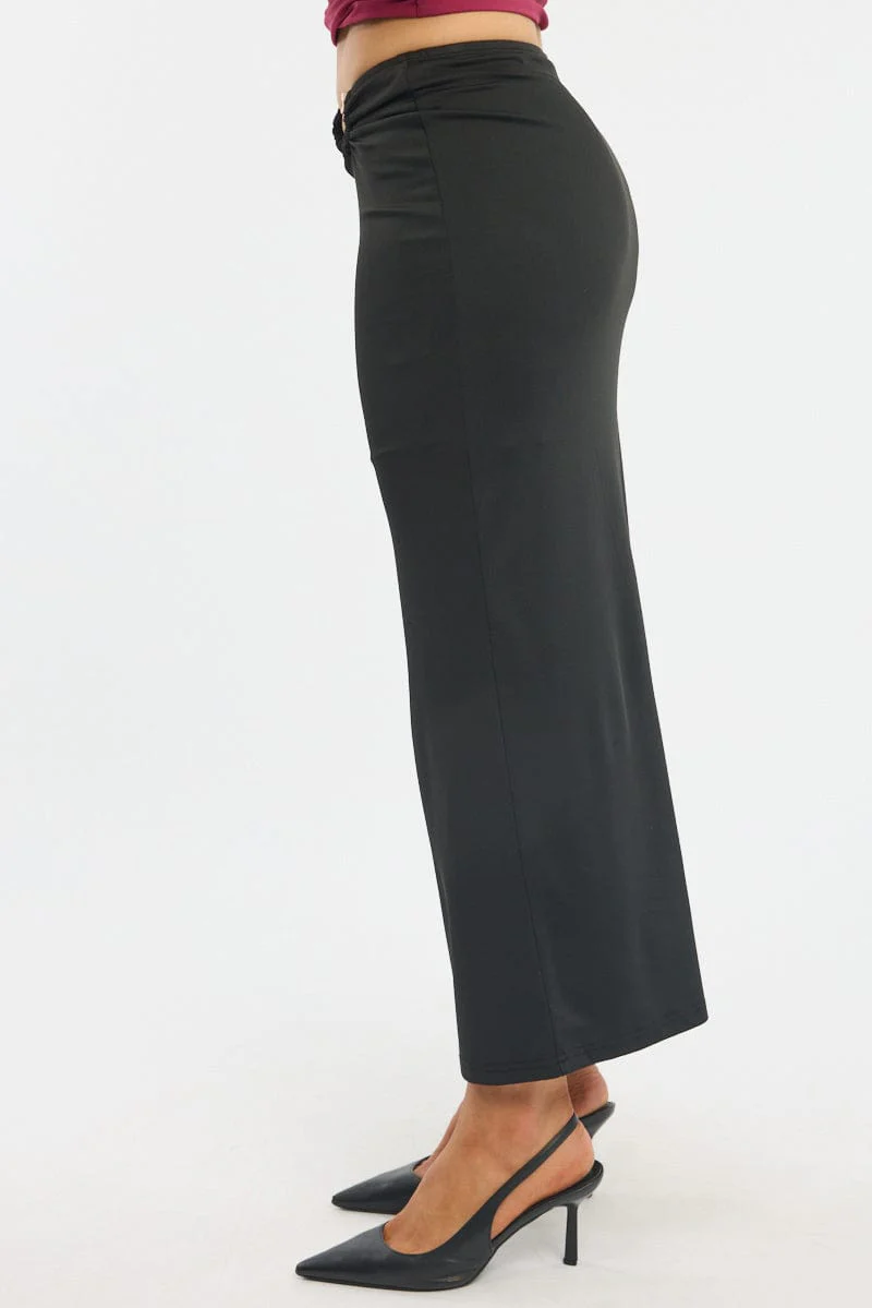 Black Hardware Buckle Maxi Skirt