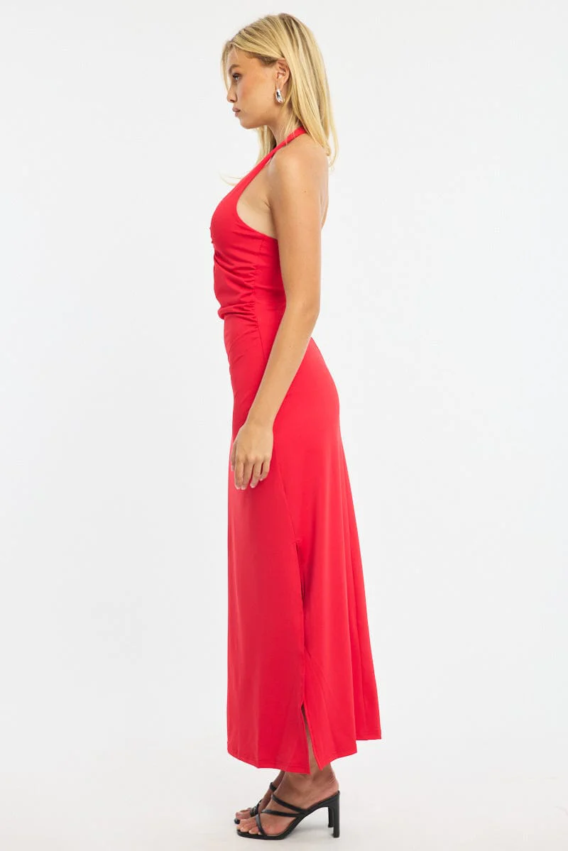 Red Maxi Dress Halter Neck