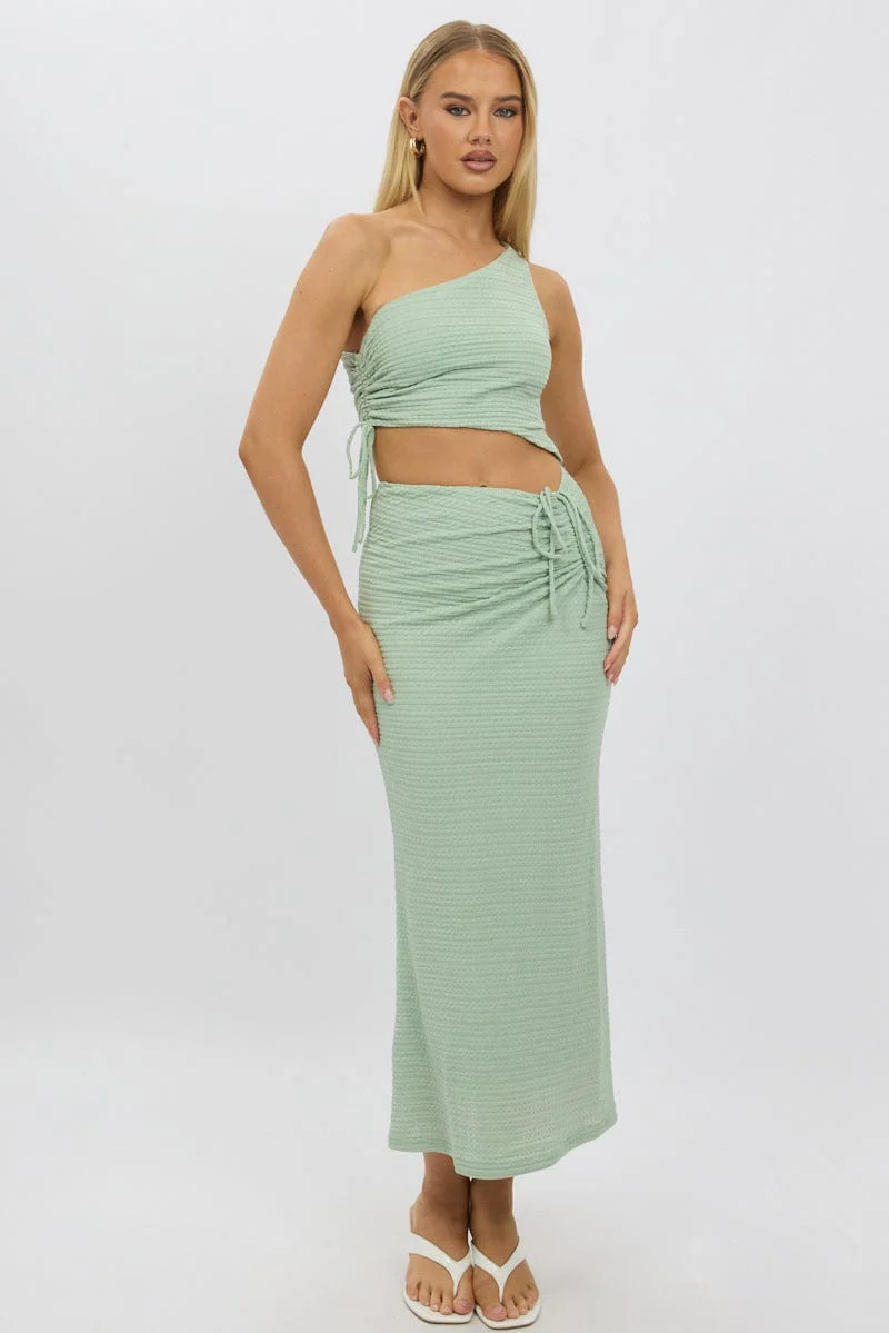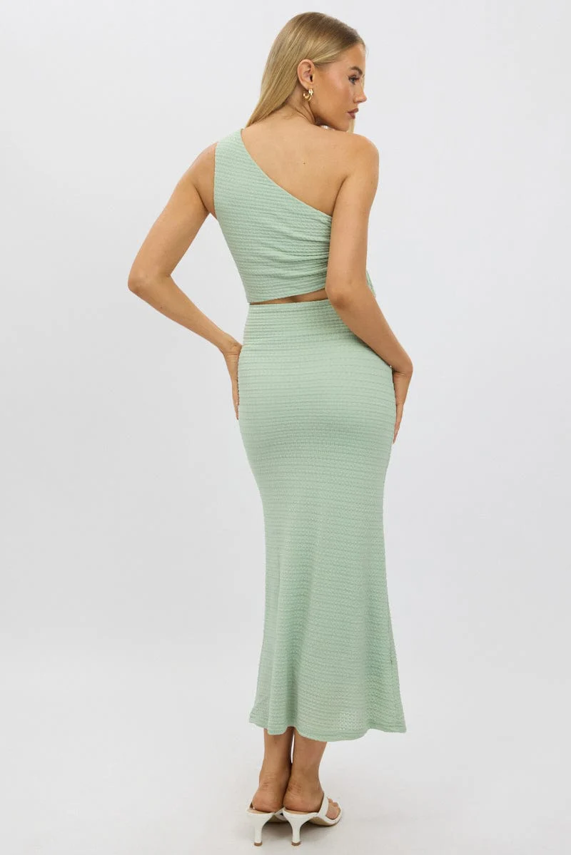 Green Bodycon Dress One Shoulder Maxi