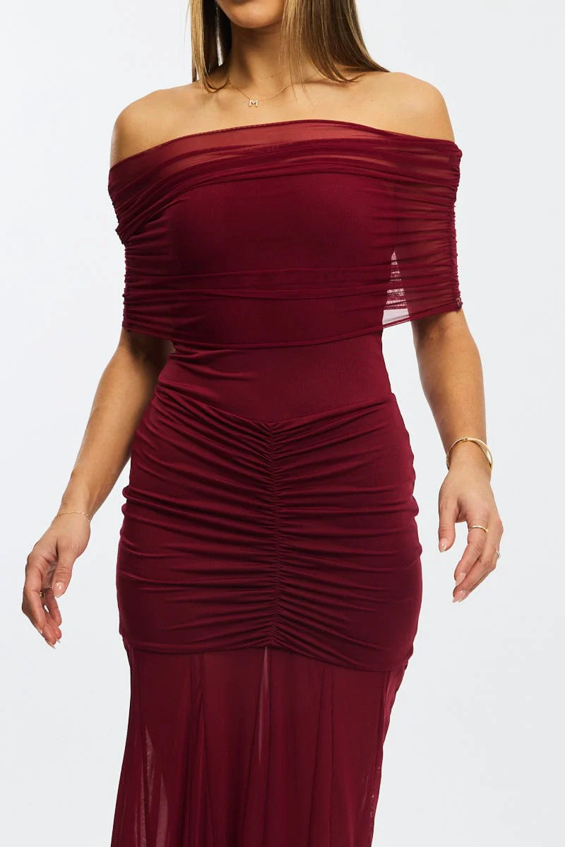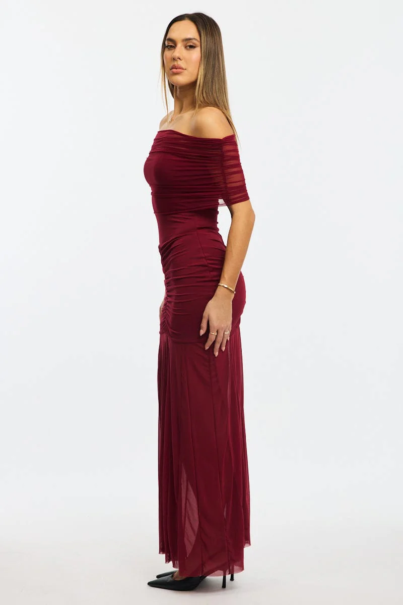 Red Off Shoulder Maxi Dress Mesh