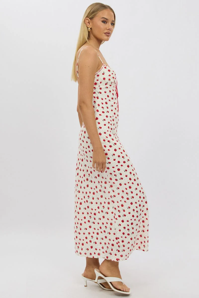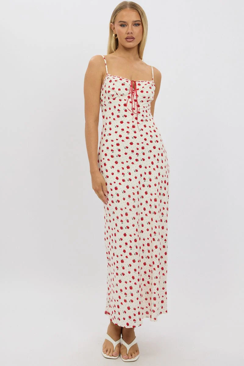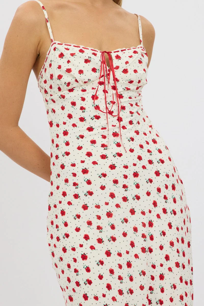 Red Ditsy Maxi Dress Lace Satin Tape