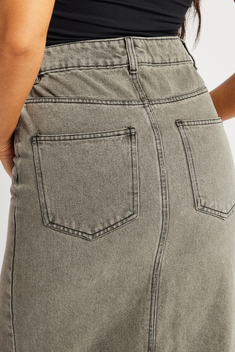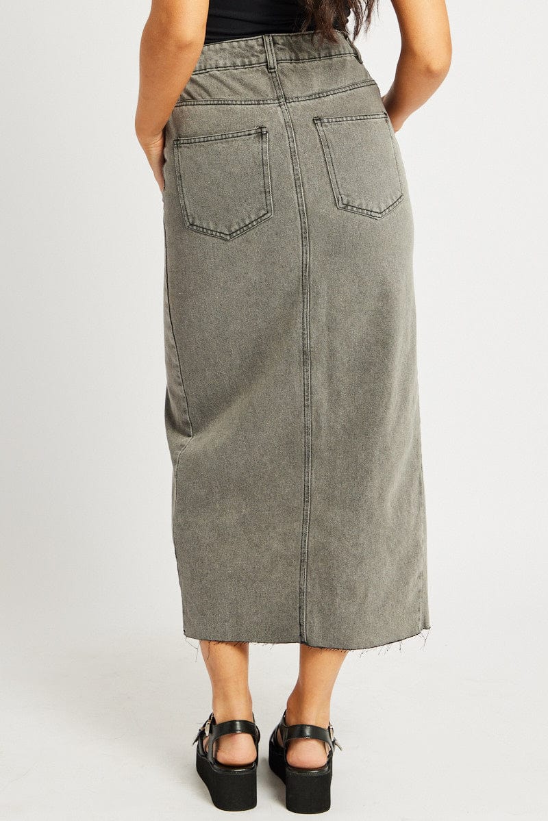 Grey Maxi Skirt High Rise Front Split