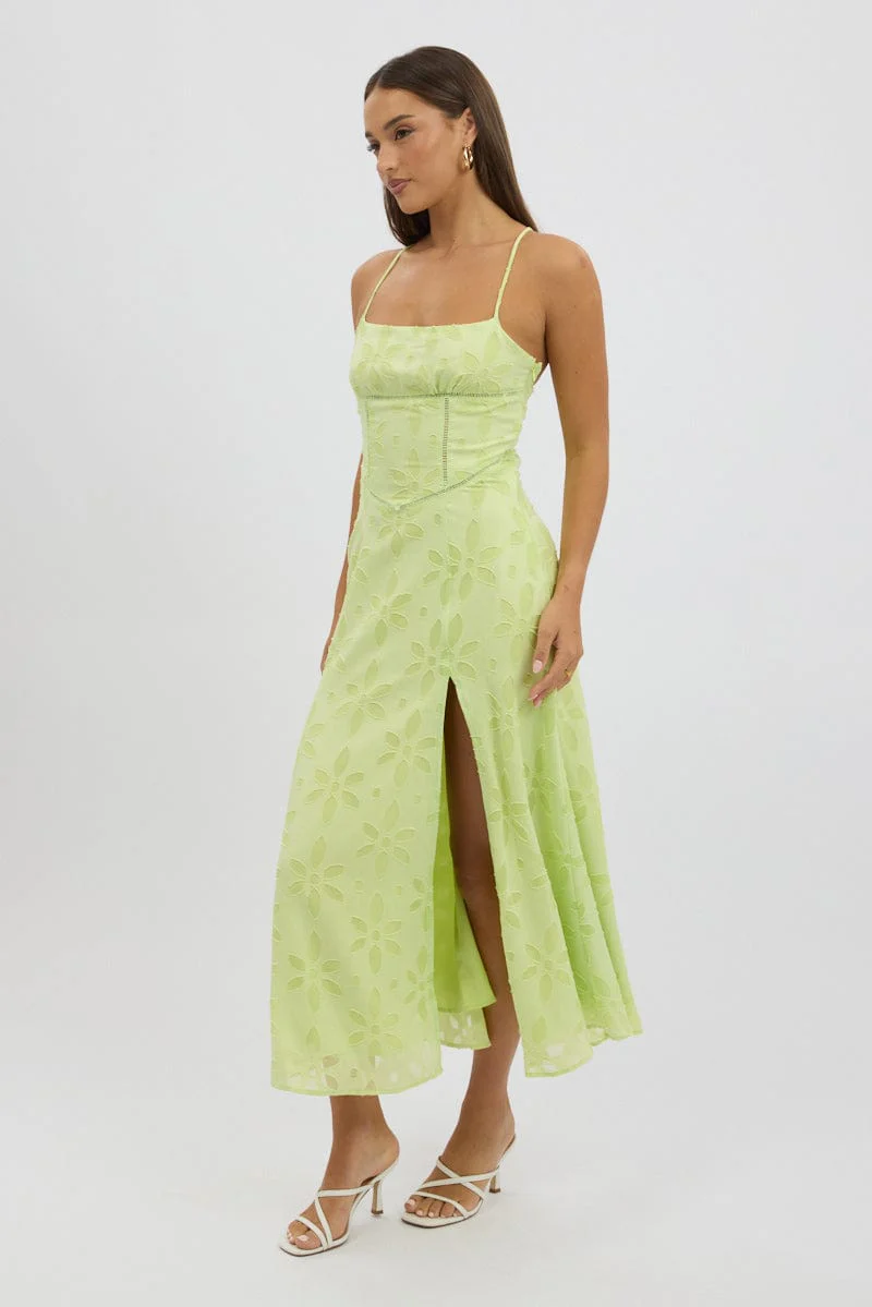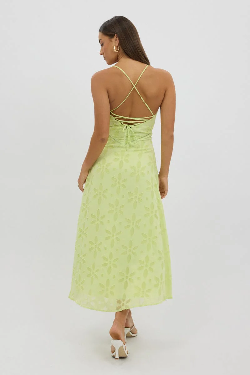 Green Maxi Dress Jacquard Lace