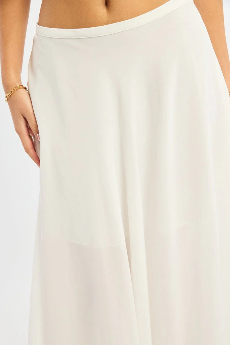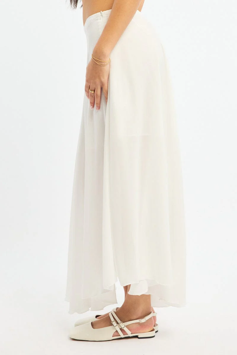 White Maxi Skirt Flowy High Waisted Poly Chiffon