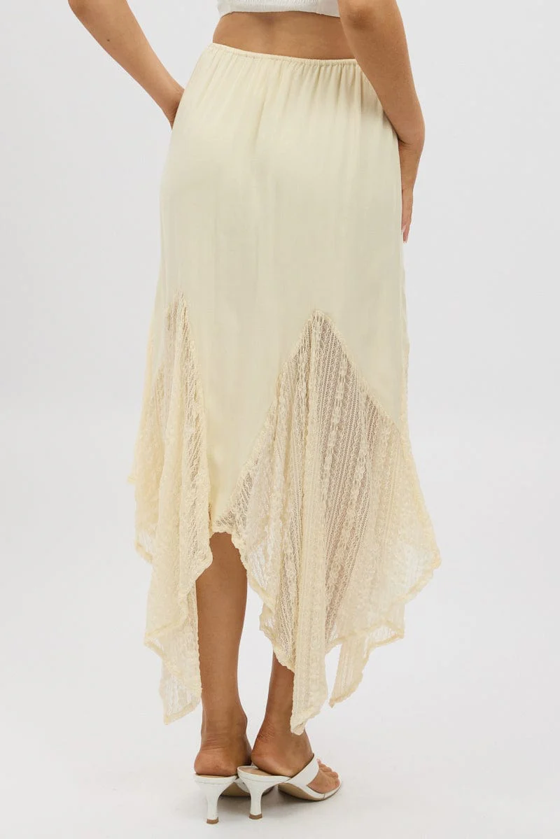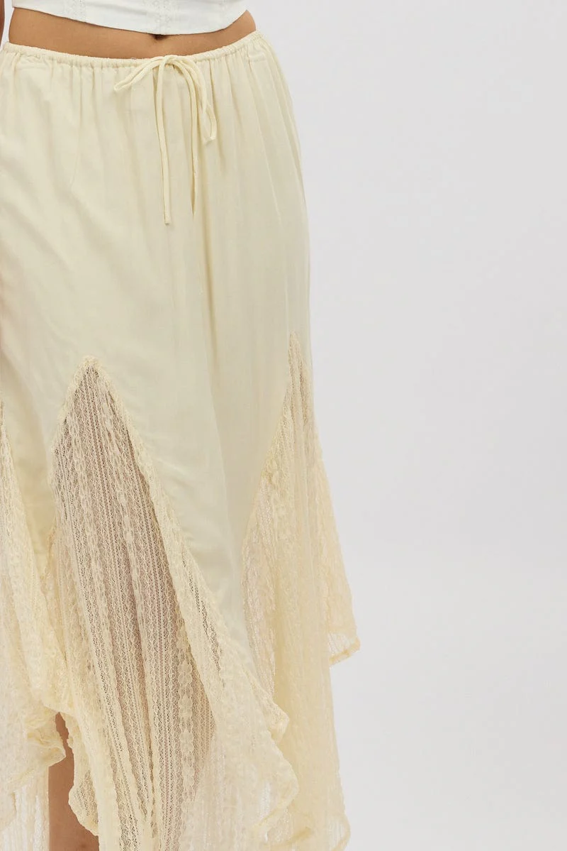 White Lace Elastic Waist Scarf Hem Maxi Skirt