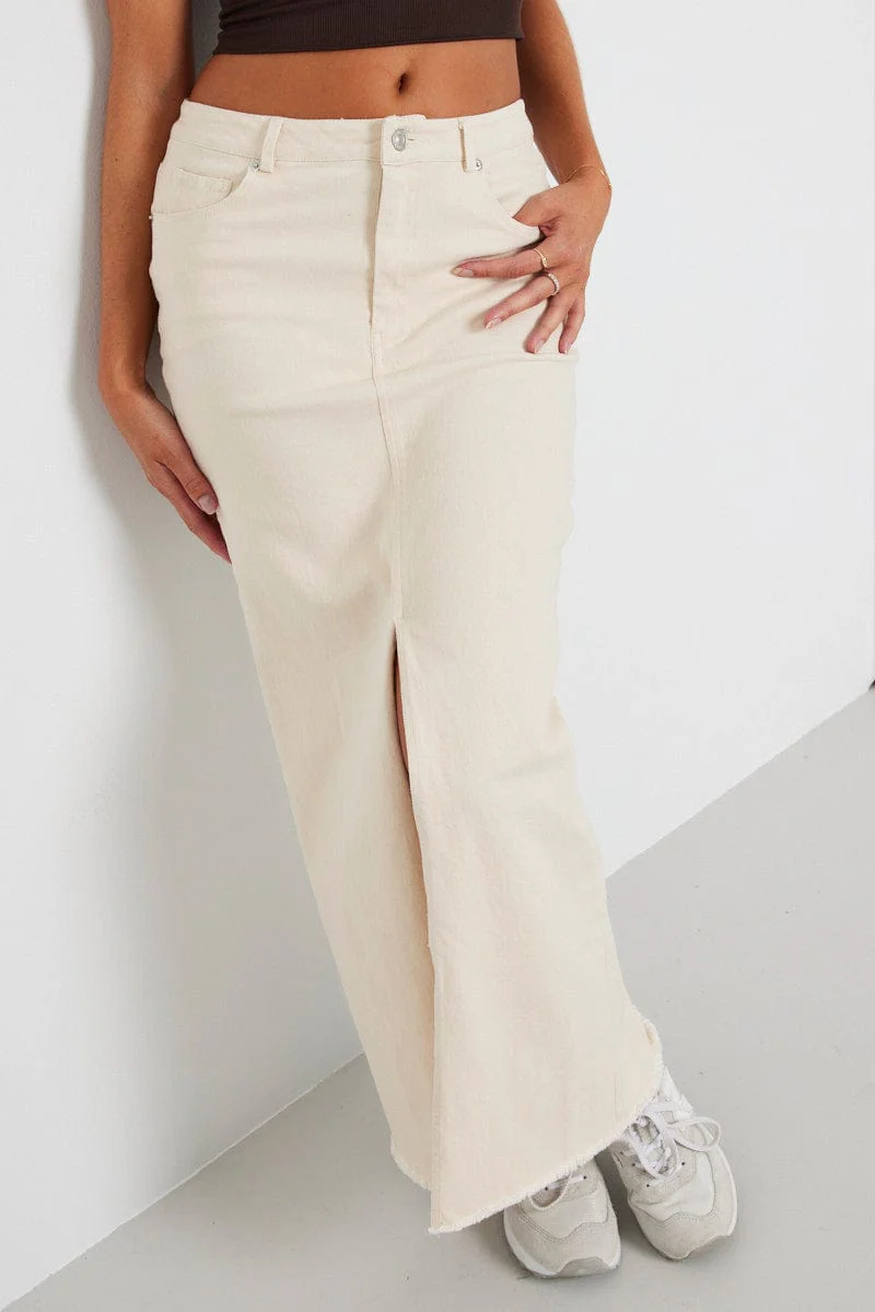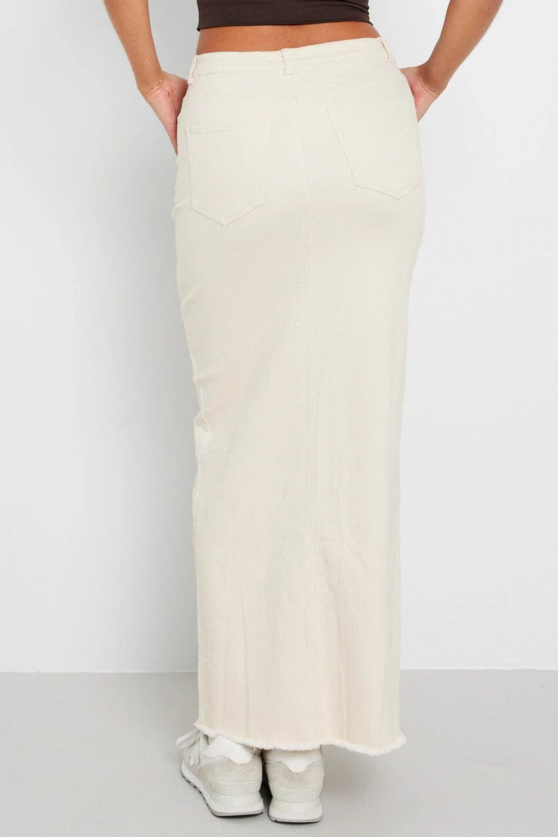 Beige Denim Skirt Maxi Front Split