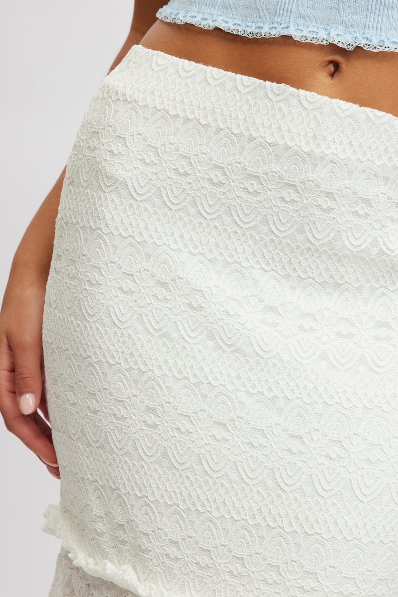 White Crochet Maxi Skirt High Rise Relaxed Lined