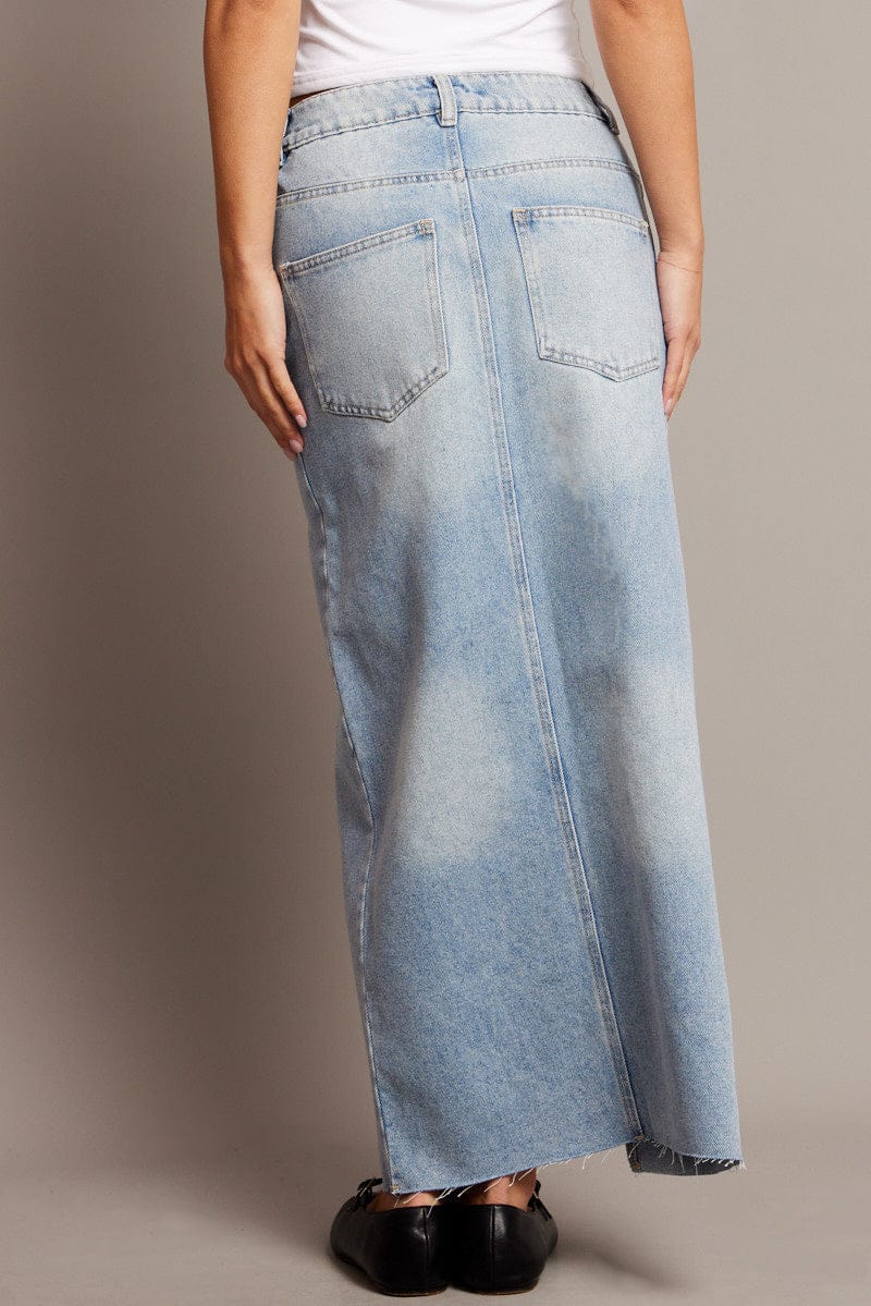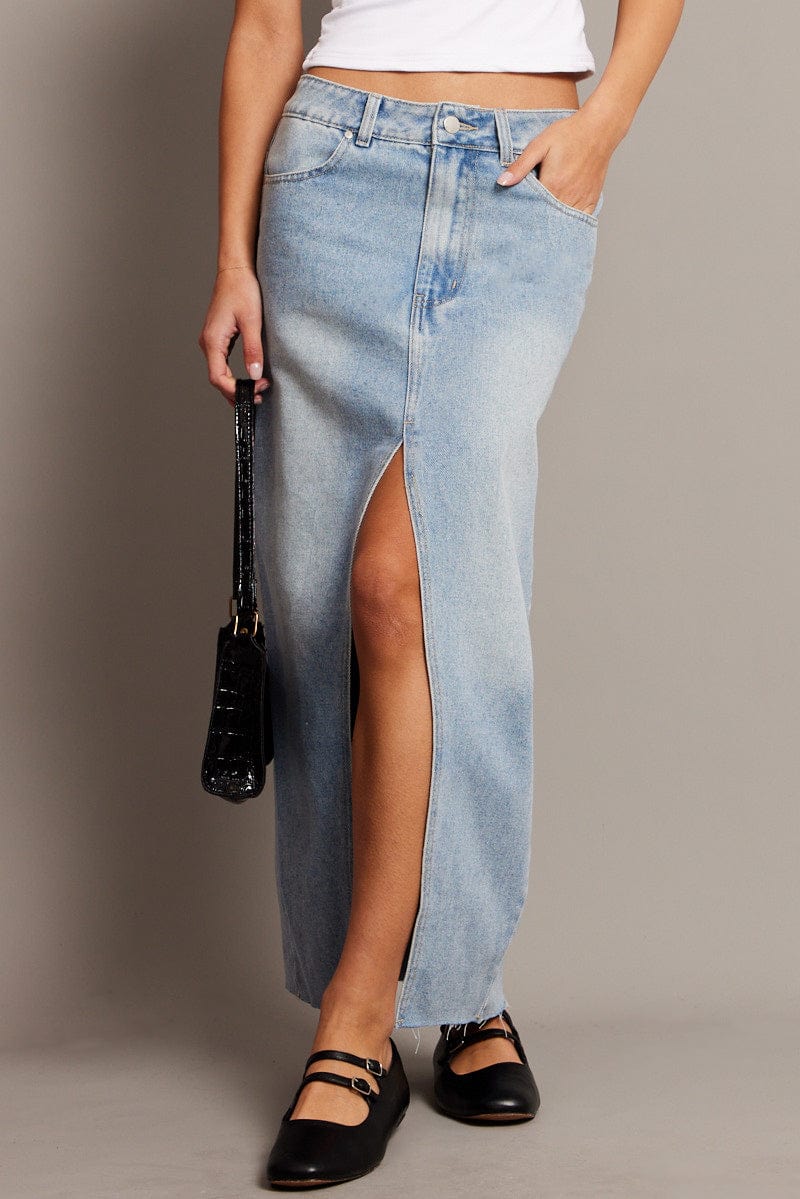 Denim Maxi Skirt High Rise Front Split